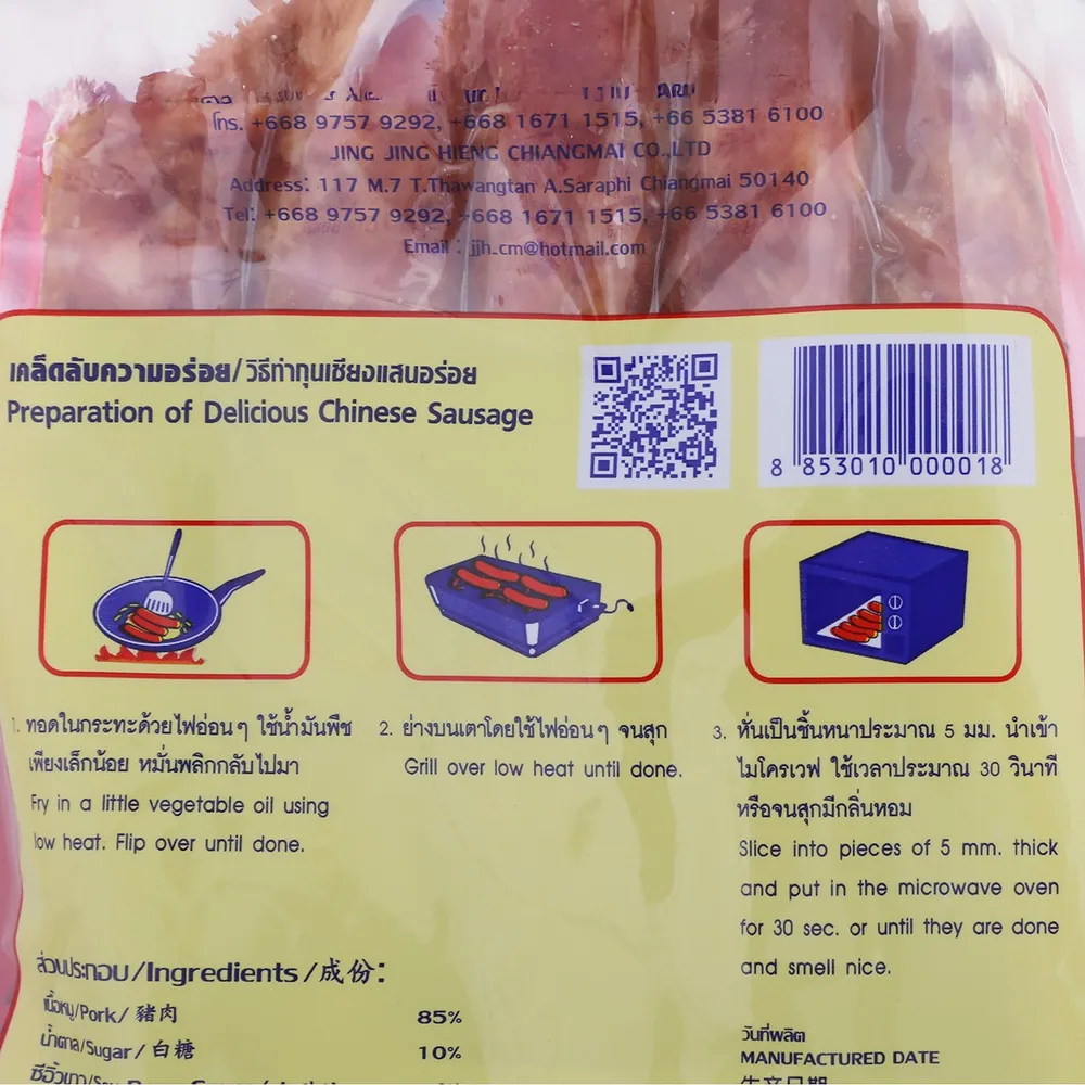 เอร็ดอร่อยไปกับ จิง จิง เฮียง กุนเชียง ผลิตภัณฑ์อาหารแปรรูปคุณภาพเยี่ยมจากแบรนด์ จิง จิง เฮียง ที่ผลิตจากวัตถุดิบคุณภาพดี ผ่านกรรมวิธีที่ได้มาตรฐาน รสชาติอร่อย สำหรับนำไปประกอบอาหารต่างๆ ได้ตามต้องการ เช่น ข้าวผัดกุนเชียง ไข่กระทะ หรือนำไปทอด เพื่อรับประทานกับข้าวสวย ข้าวต้ม<br />