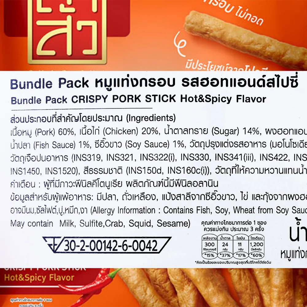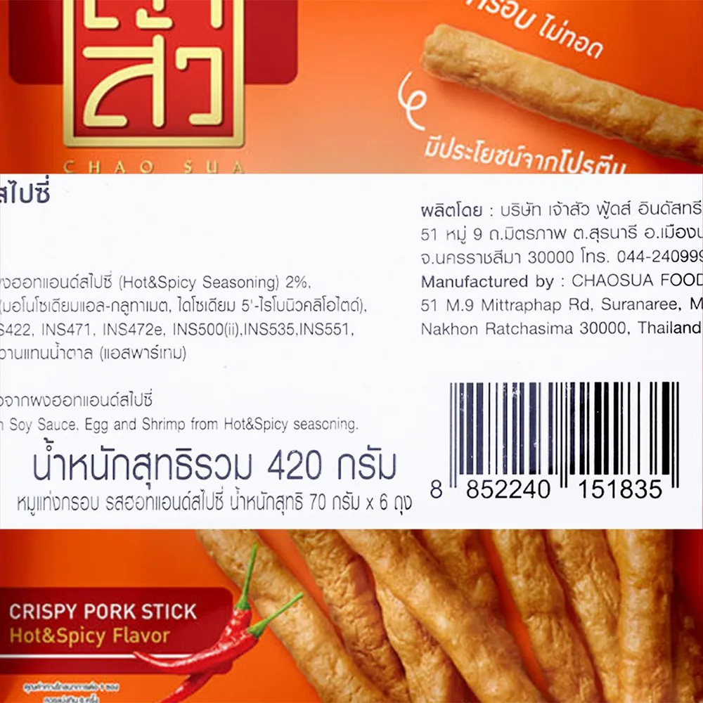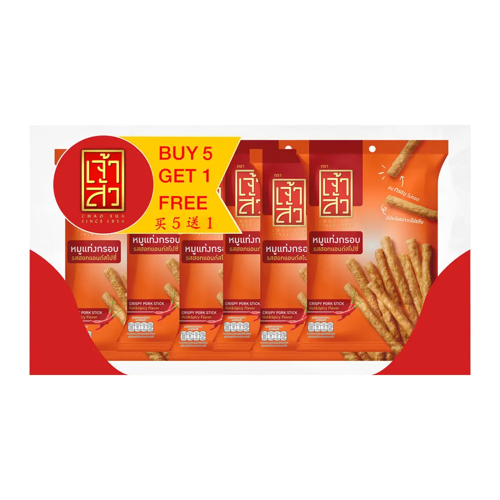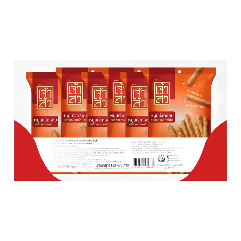 เจ้าสัว หมูแท่งกรอบ รสฮอทแอนด์สไปซี 70 ก. แพ็ค 6 ถุง