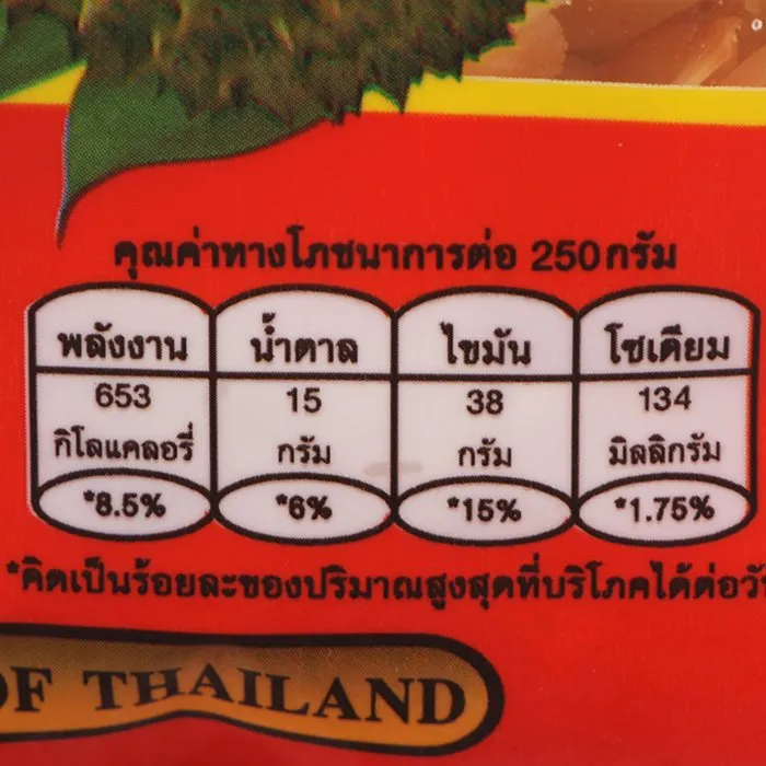 <p>บุญเที่ยง ทุเรียนกรอบ จันทบุรี 250 ก.<br /><br />บุญเที่ยง ทุเรียนกรอบ จันทบุรี ผลิตจากทุเรียนไทยคุณภาพดี 100% รสชาติอร่อย ให้คุณค่าทางโภชนาการ ผ่านมาตรฐานสินค้าประเภทอาหารโดย GMP สำหรับรับประทานเป็นอาหารว่าง หรือนำไปเป็นของฝากในเทศกาลแห่งความสุข <br /><br />- ทุเรียนกรอบ จันทบุรี<br />- ผลิตจากทุเรียนไทยคุณภาพดี 100%<br />- อร่อยสำหรับรับประทานเป็นอาหารว่าง หรือนำไปเป็นของฝาก<br /><br />*ภาพประกอบใช้เพื่อการโฆษณาเท่านั้น</p>