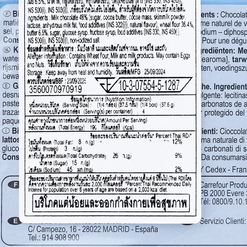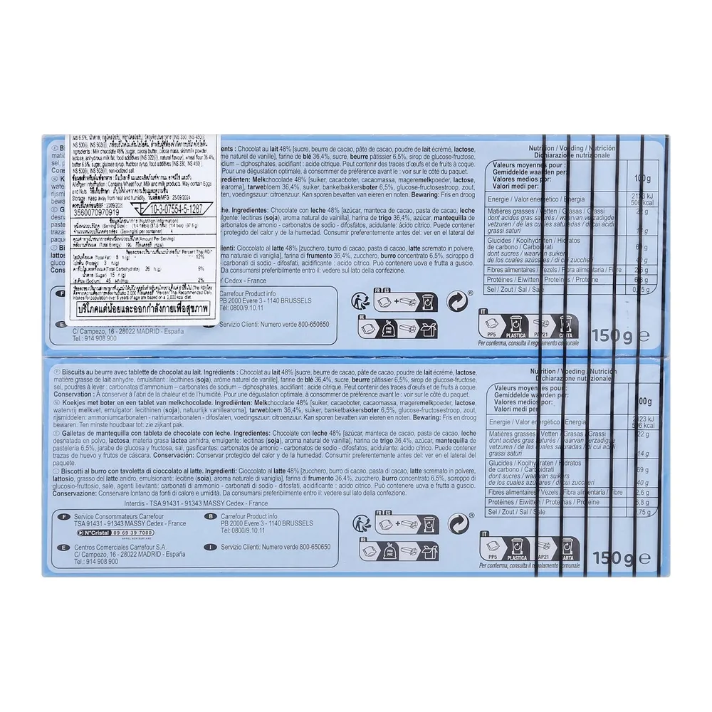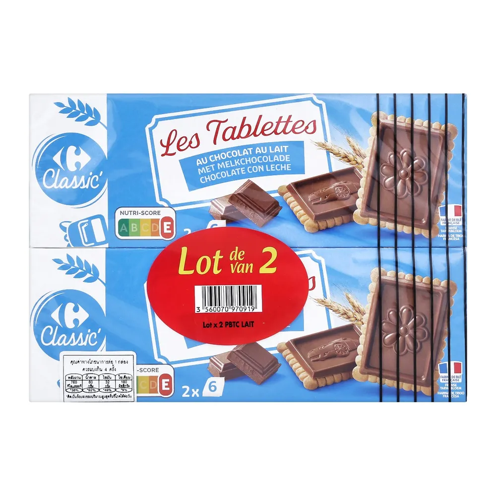 คาร์ฟูร์ เลส เทเบิลเทส อู ช็อกโกลาต์ อู เลต์&nbsp; บิสกิตเนยกรอบราดด้วยช็อกโกแลตนม รสชาติหวานละมุนจากช็อกโกแลตนมและความกรอบจากบิสกิต ทำให้ทุกคำทานอร่อยลงตัว เหมาะสำหรับเป็นของว่างหรือขนมหวานในทุกเวลา!<br />