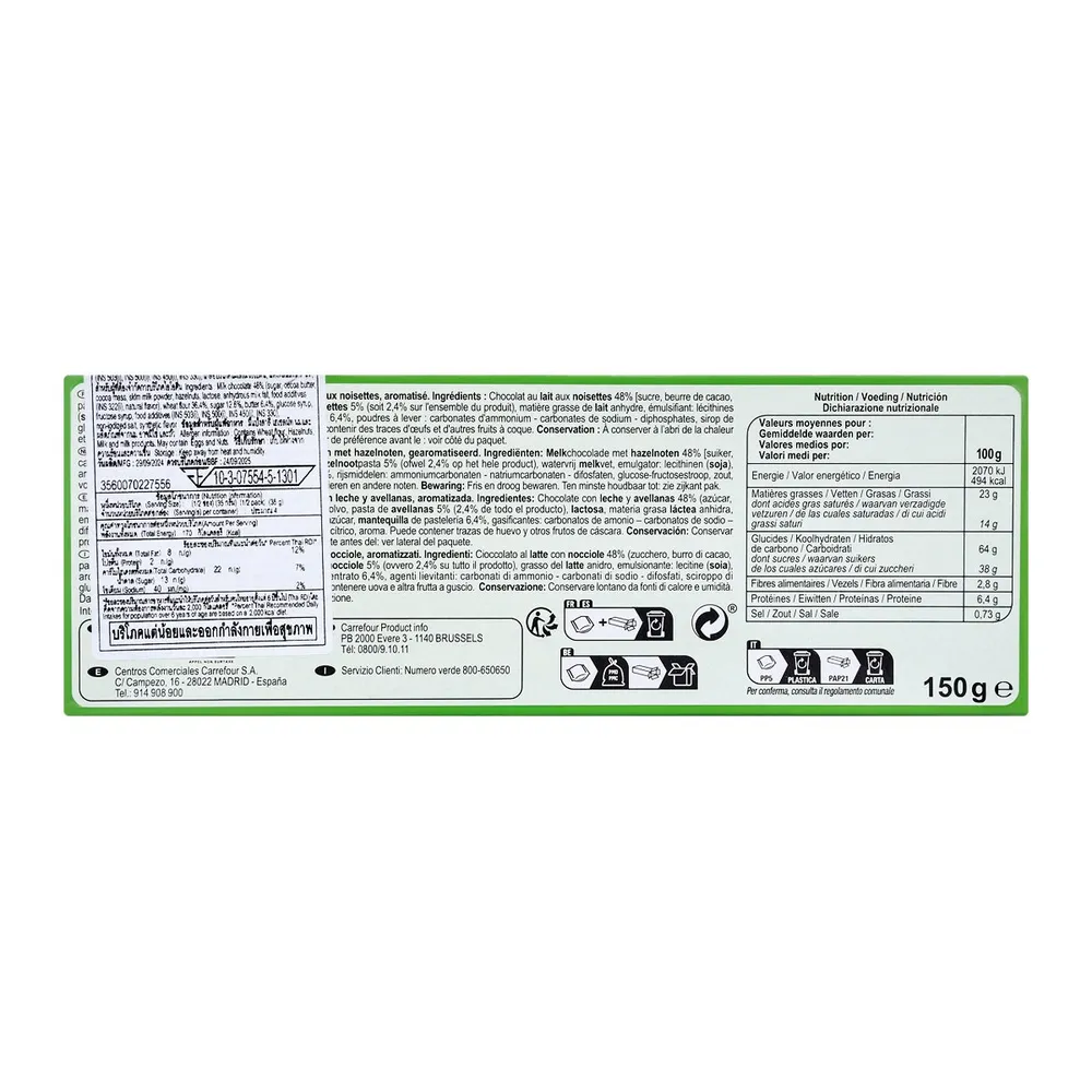 คาร์ฟูร์ เลส เทเบิลเทส กูต์ นัวเซทส์ ช็อกโกลาต์ อู เลต์ 150 ก.