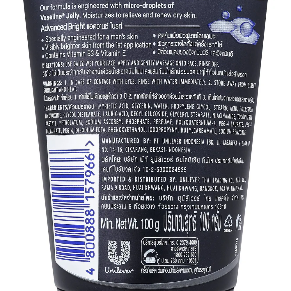 วาสลีน เมน แอดวานซ์ ไวท์ เฟซ วอช วิตามินบี 3 ขนาด 100 ก.