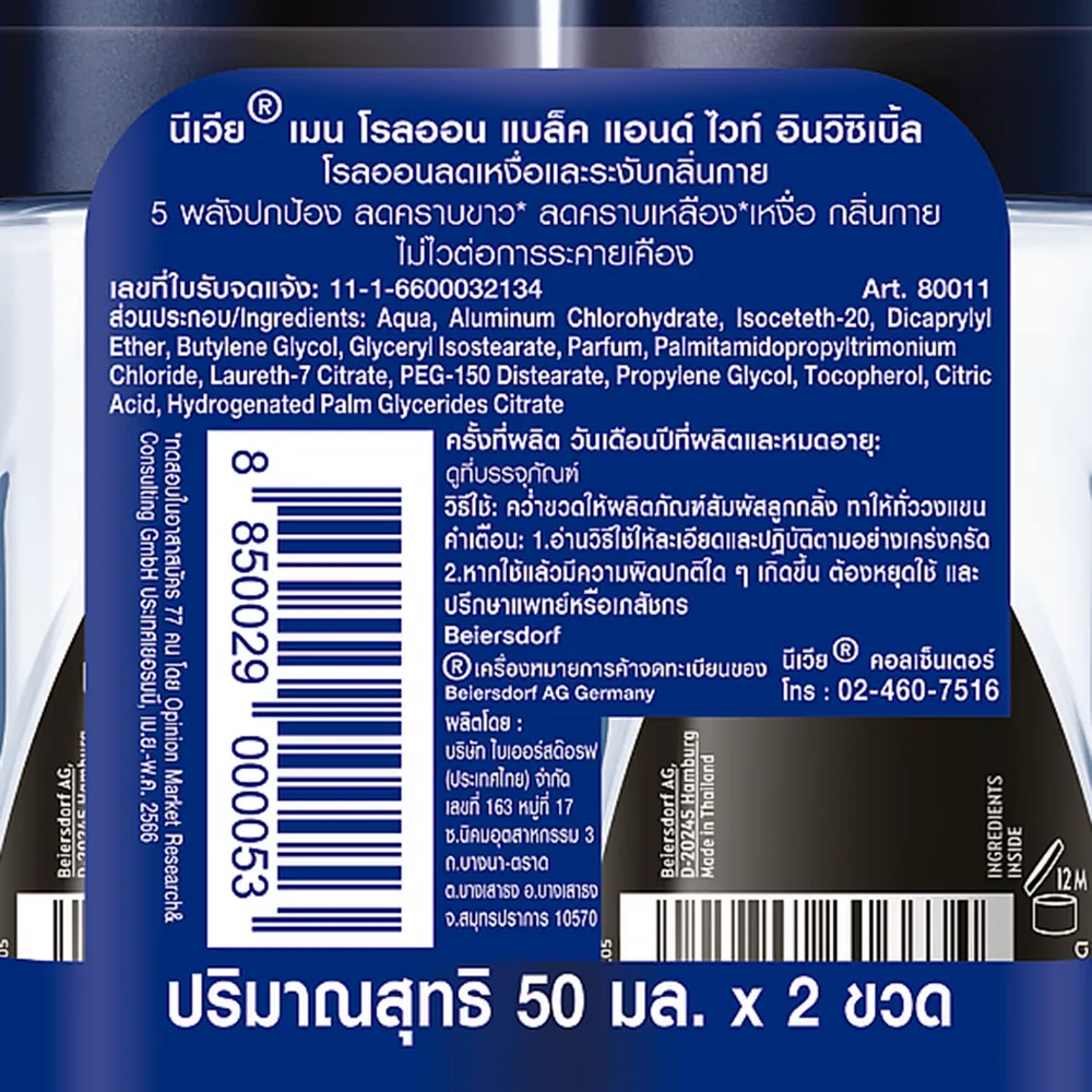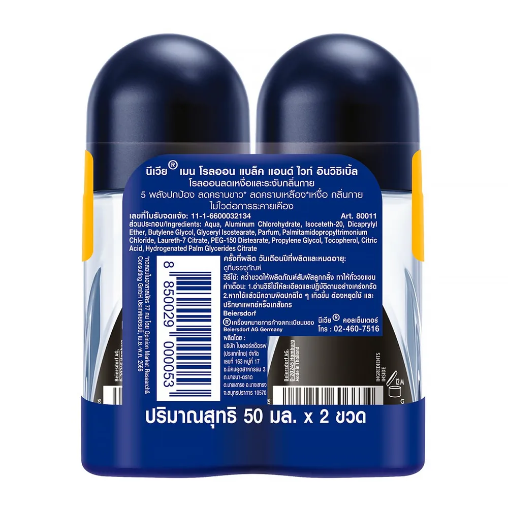 นีเวีย ดีโอ เมน แบล็ค แอนด์ ไวท์ โรลออน ระงับกลิ่นกาย สำหรับผู้ชาย 50 มล. แพ็คคู่