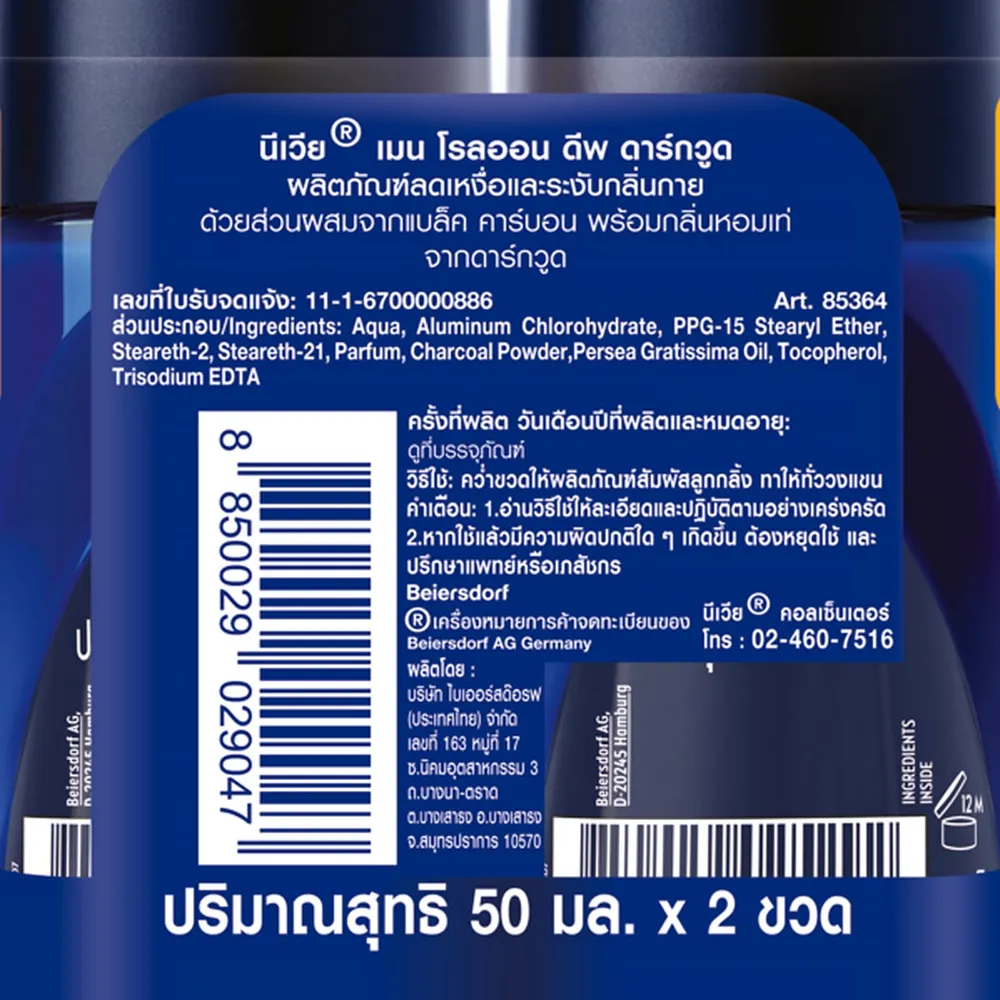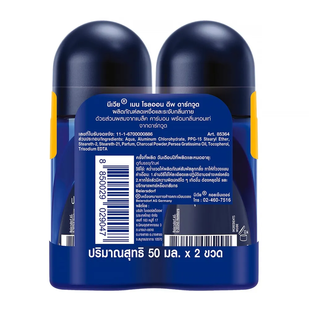 นีเวีย เมน ดีโอ ดีพ แบล็ค ชาร์โคล โรลออน 50 มล. แพ็คคู่