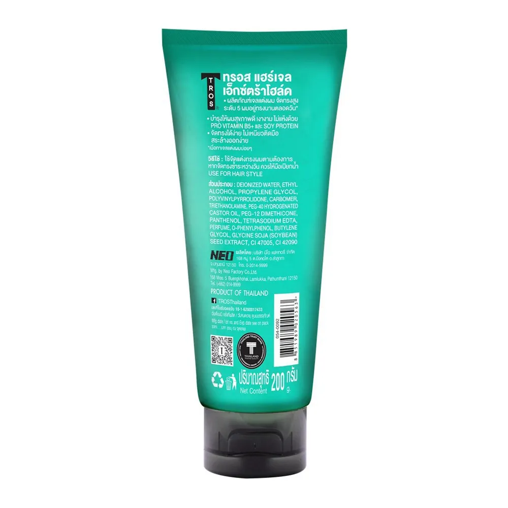 ทรอส เจลแต่งผม สูตรเอ็กซ์ตร้าโฮลด์ ช่วยบำรุงเส้นผม ให้ผมเงางาม ไม่แห้งเสียด้วยสารสกัดธรรมชาติและวิตามินต่างๆ เพิ่มความมั่นใจให้ผมอยู่ทรงนานเป็นพิเศษ<br />