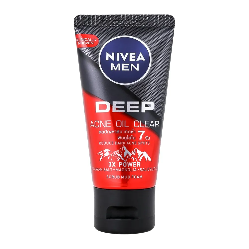 นีเวีย เมน ดีพ ราพิด แอคเน่ เคลียร์ สครับ มัดโฟม โฟมสครับล้างหน้าสำหรับผิวมันมาก เป็นสิวง่ายมาก มีรอยสิวลึก ครั้งแรกของการปรับสมดุลผิวเพื่อจัดการสิวเกิดซ้ำซาก ให้ผิวดูดีขึ้นใน 7 วัน พร้อมพลังดีท๊อกซ์ผิวจากสครับธรรมชาติจัดการสิ่งสกปรกและความมัน<br />