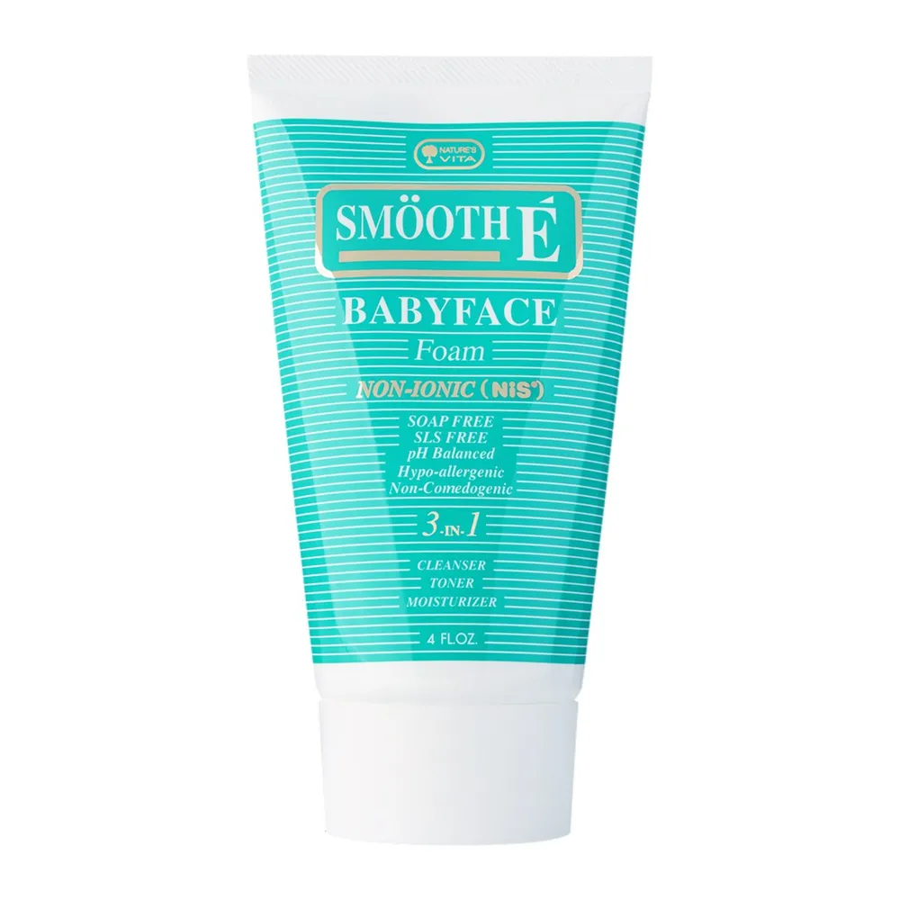 ป้องกันการเกิดสิวและริ้วรอย ดูแลใบหน้า อ่อนเยาว์อยู่เสมอ สมูท อี เบบี้เฟซ โฟม เป็นโฟมสูตรไม่มีฟอง สูตรนันไอออนิคแท้ 100 % (NIS 100%) ไม่ทิ้งสารเคมีตกค้างอันเป็นสาเหตุของสิวและริ้วรอย<br />