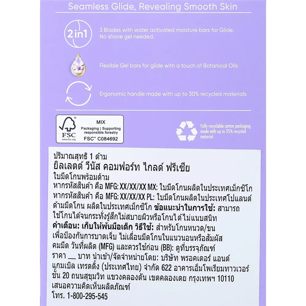 ยิลเลตต์ วีนัส คอมฟอร์ทไกลด์ ฟรีเซีย เซนท์ ด้ามมีดโกน 1 ชิ้น + ใบมีดโกน 1 ชิ้น