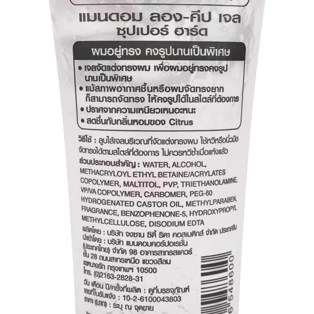 จีลองคีป แมนดอม เจลแต่งผม ซุปเปอร์ ฮาร์ด สำหรับการจัดแต่งให้ผมอยู่ทรงได้นานตลอดทั้งวัน ผมคงรูปนานเป็นพิเศษ สดชื่นกับกลิ่นหอมอ่อนๆ จากซีตรัส<br />