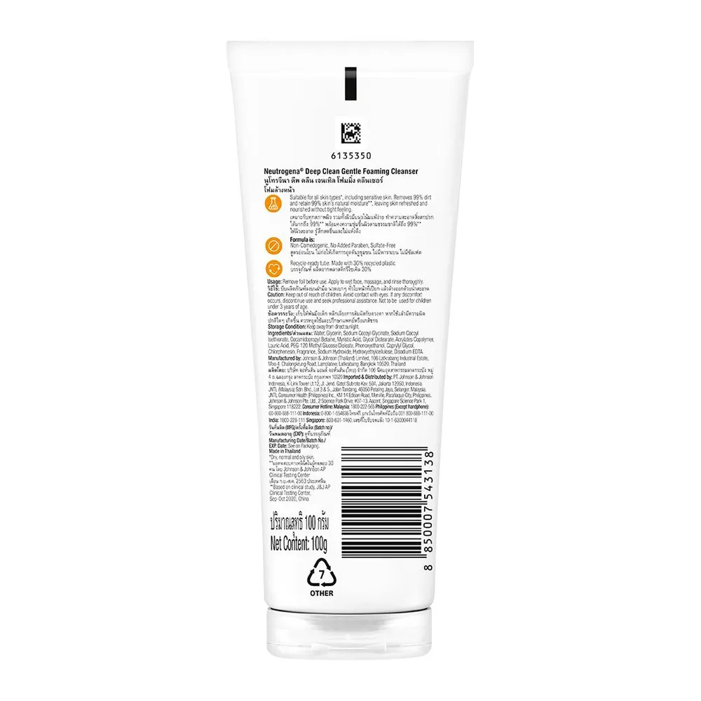 นูโทรจีนา ดีพ คลีน เจนเทิล โฟมมิ่ง คลีนเซอร์ 100 ก.