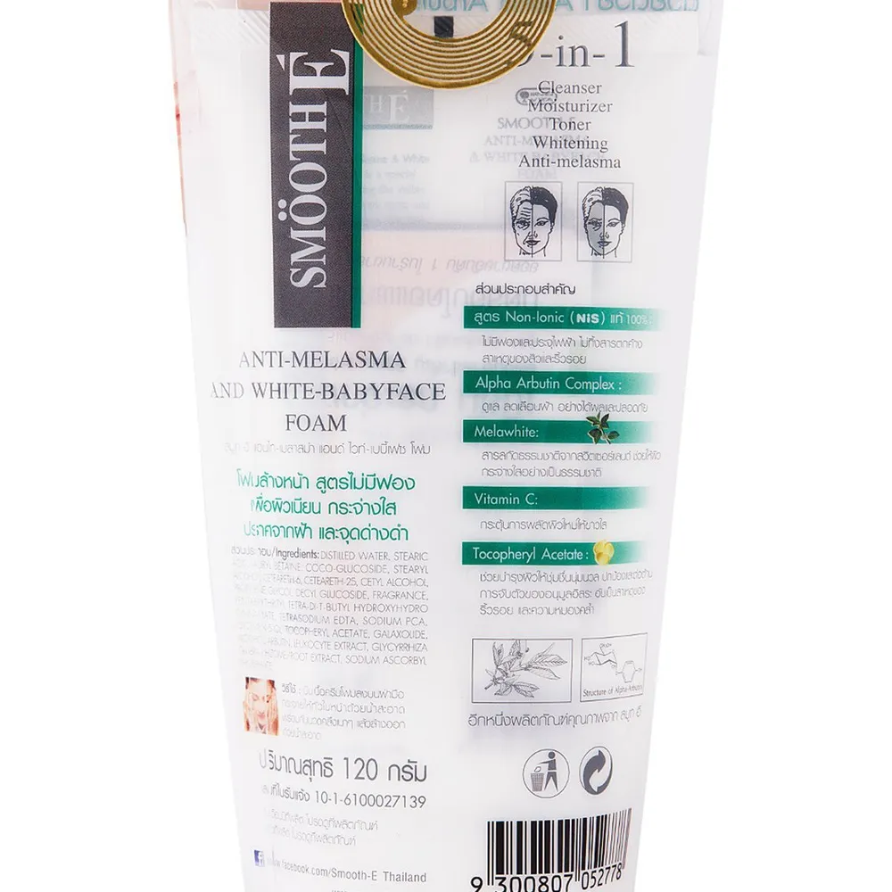 สมูทอี โฟมล้างหน้า สูตรแอนไท เมลาสมา แอนด์ ไวท์ เบบี้เฟส 120 มล.