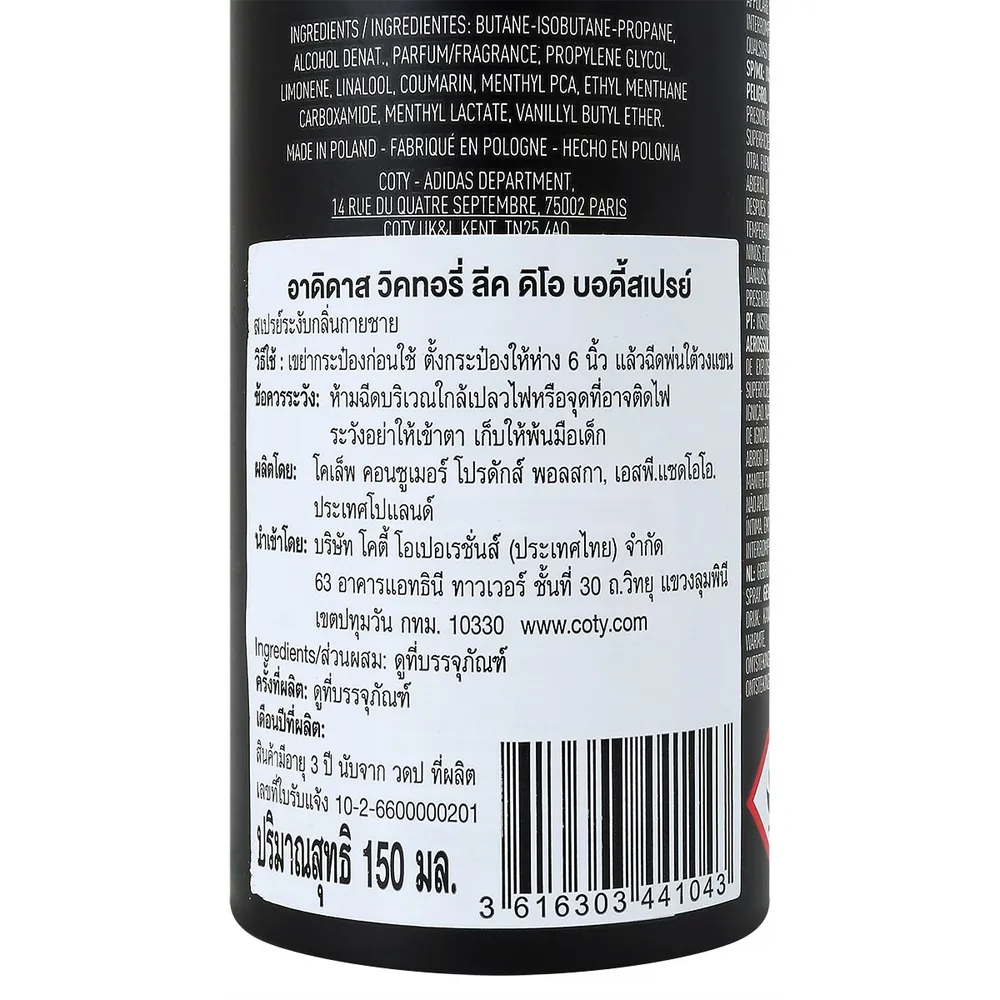 อาดิดาส วิคตอรี่ ลีก สเปรย์ระงับกลิ่นกายสำหรับผู้ชาย 150 มล.