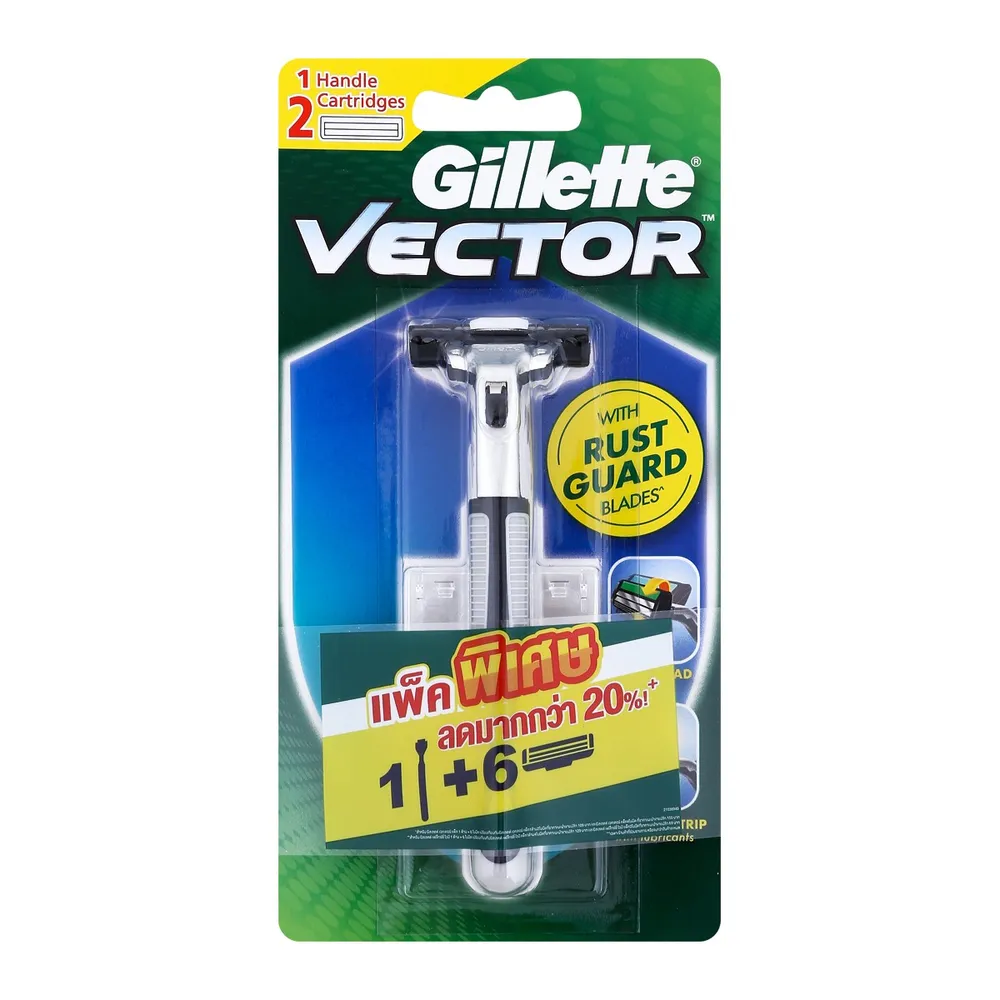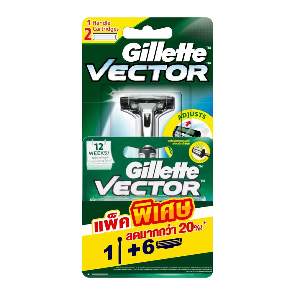 ยิลเลตต์ เวคเตอร์ 2 ด้ามมีดโกน 1 ด้าม + ใบมีดโกน 6 ชิ้น