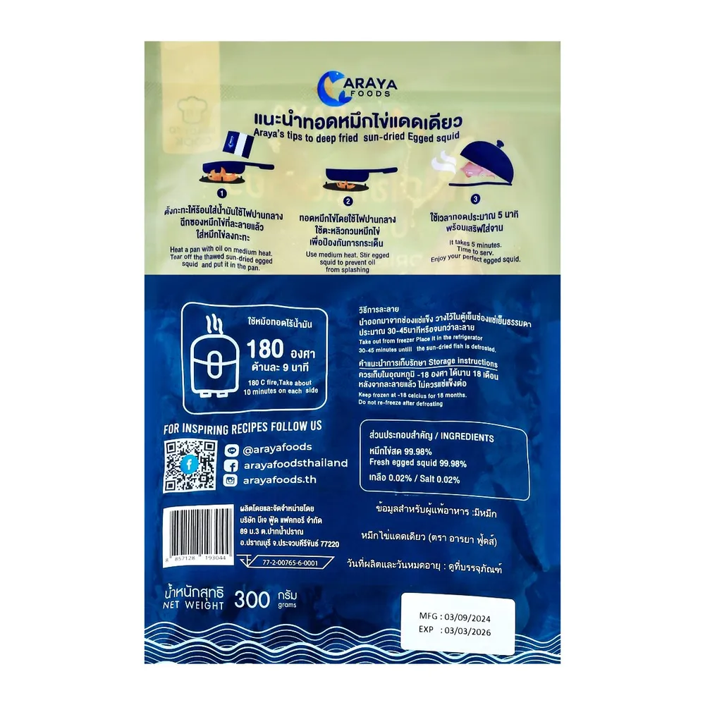 อารยา ฟู้ด หมึกไข่แดดเดียวปราณบุรี 300 ก.