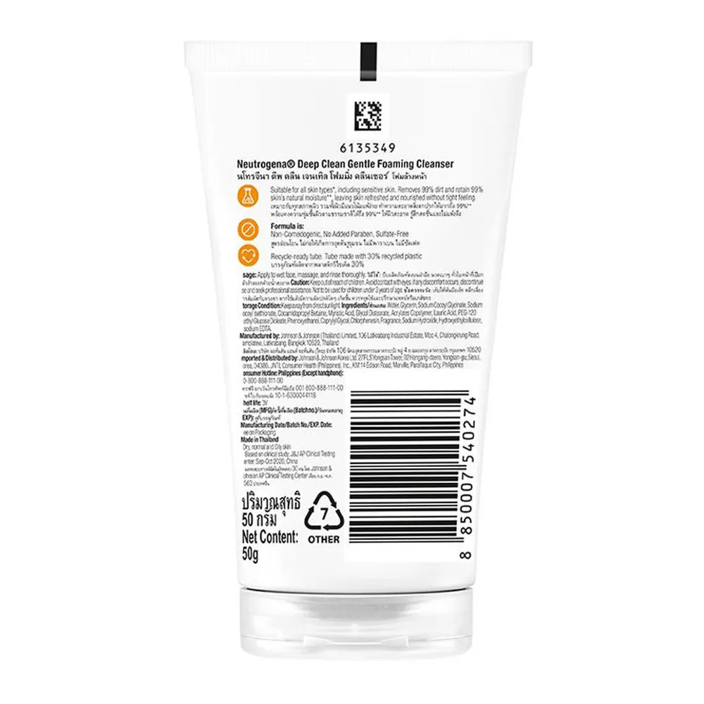 นูโทรจีนา โฟมล้างหน้า ดีพคลีน โฟมมิ่ง คลีนเซอร์ 50 ก.