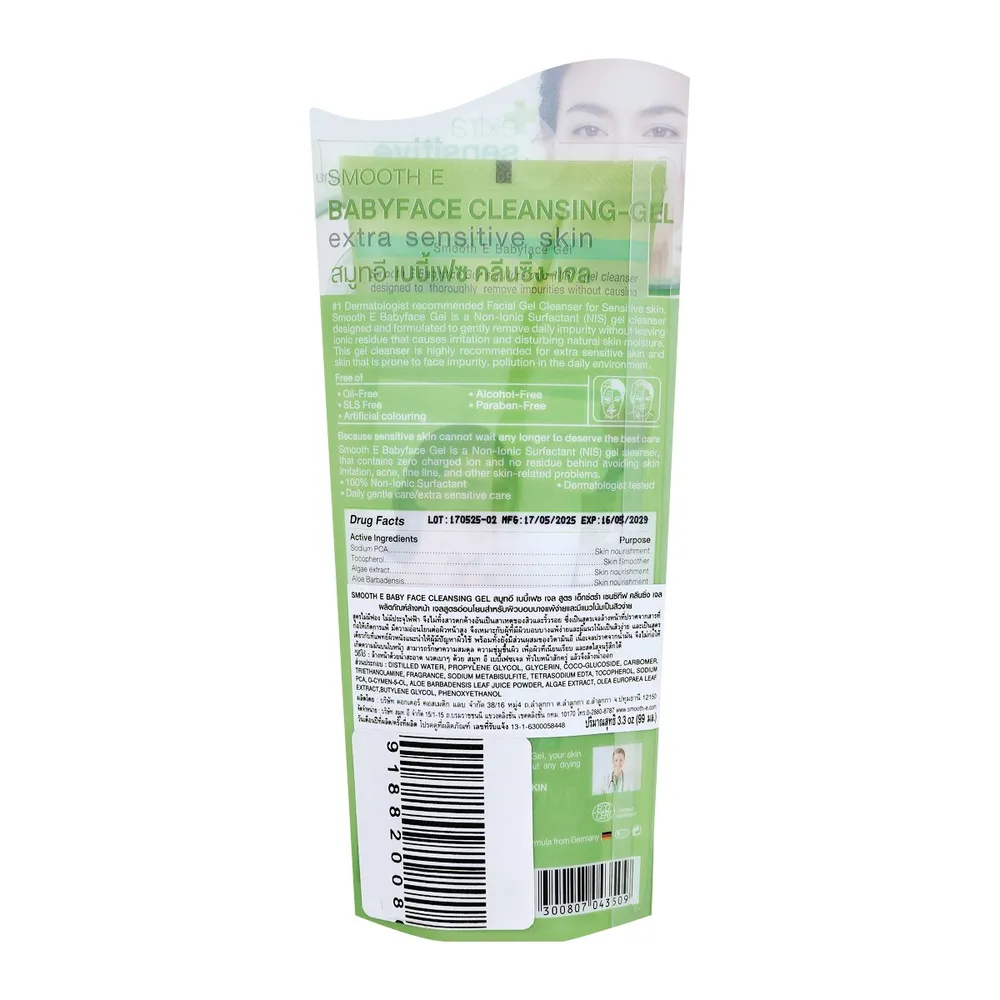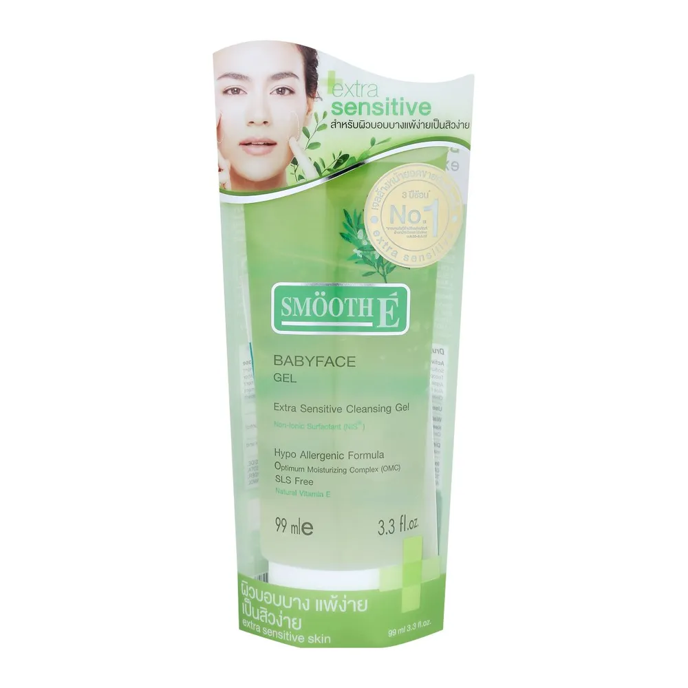 สมูทอี เบบี้เฟส เจล เอ็กซ์ตร้า เซนซิทีฟ คลีนซิ่งเจล ผลิตภัณฑ์เจลล้างหน้าที่แพทย์ผิวหนังแนะนำให้ใช้ เนื้อเจลมีความอ่อนโยนไม่ก่อให้เกิดการระคายเคือง แม้กระทั่งบริเวณที่บอบบางของผิวรอบดวงตา เหมาะกับผู้ที่มีผิวบอบบางแพ้ง่าย หรือผิวที่มีแนวโน้มเป็นสิวอุดตันง่าย<br />