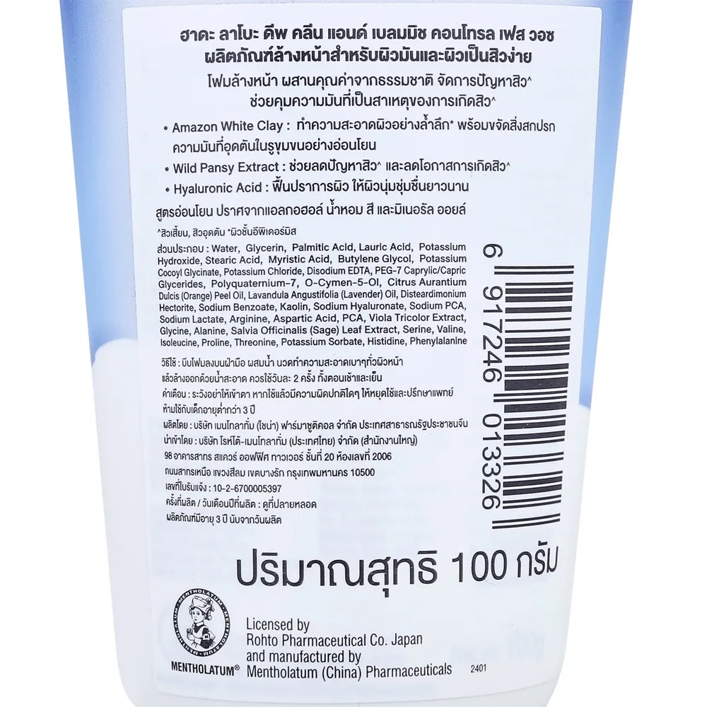 ฮาดะ ลาโบ ดีพคลีนแอนด์พิมเพิล คอนโทรลเฟส วอช 100 ก.