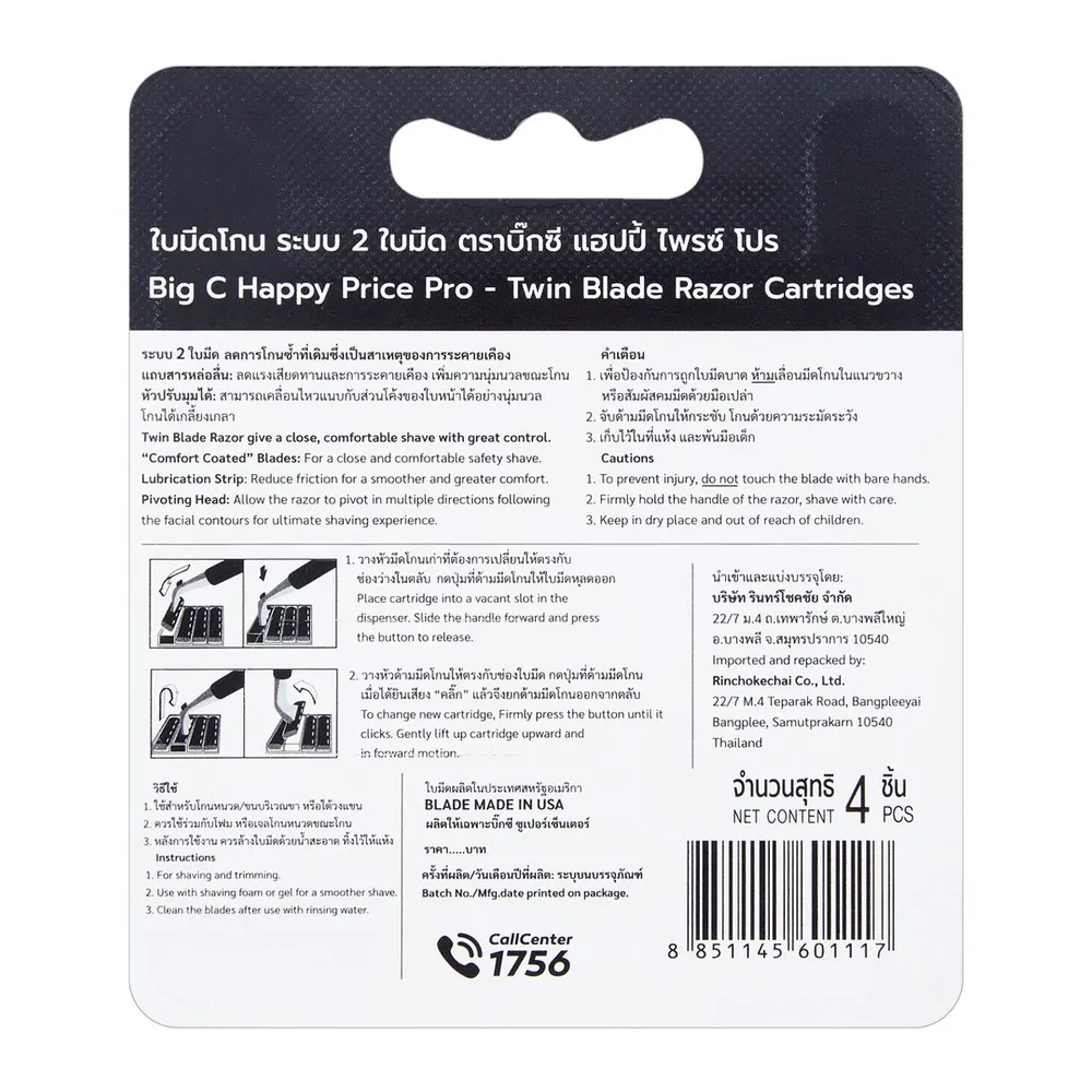 บิ๊กซี แฮปปี้ไพรซ์ โปร ใบมีดโกน ทวินเบลด 2 ใบมีด แพ็ค 4