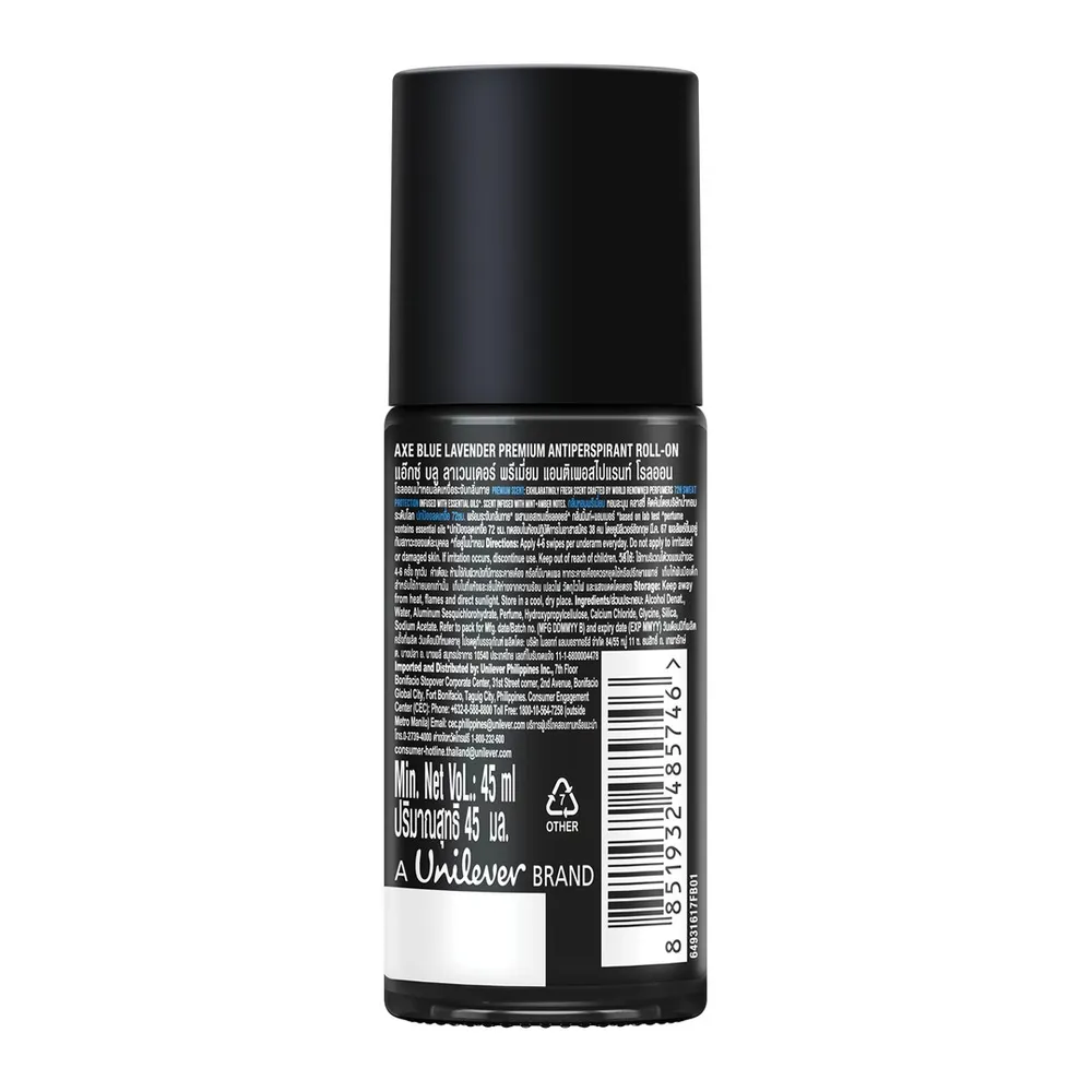 แอ๊กซ์ โรลออนระงับกลิ่นกาย กลิ่นบลู ลาเวนเดอร์ ที่สุดของกลิ่นหอมพรีเมี่ยม&rdquo; คิดค้นโดยบริษัทน้ำหอมระดับโลก หอมละมุน คลาสซี่ เหมาะกับสายเท่ คลาสสิก ผสานเอสเซนเชี่ยล ออยล์ จากมินท์และแอมเบอร์<br />