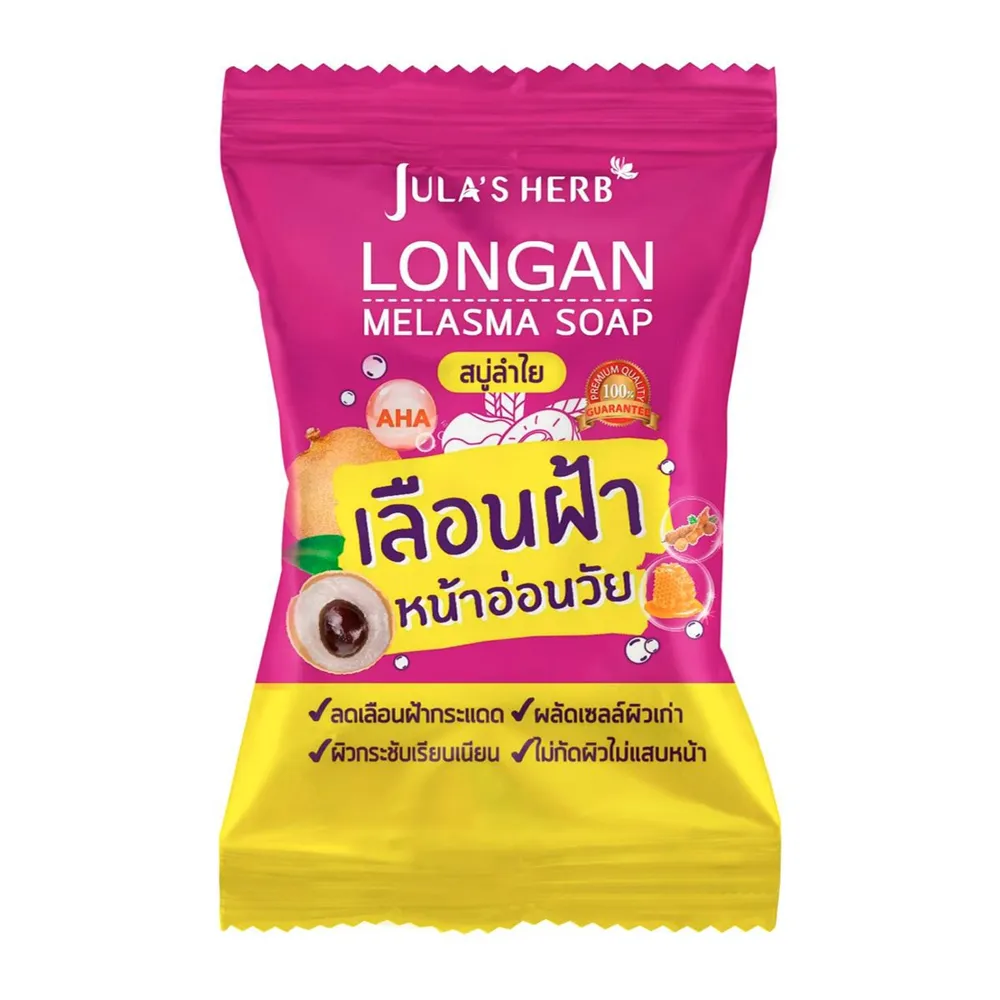 <p>จุฬาเฮิร์บ ลองแกน เมลาสม่า โซฟ 70 ก.<br /><br />จุฬาเฮิร์บ สบู่ลำไย ทำความสะอาดผิวหน้าและผิวกาย ช่วยชำระล้างสิ่งสกปรกได้อย่างล้ำลึก ผสานสารสกัดจากธรรมชาติ <br /><br />- ช่วยเลือนฝ้า กระแดด จุดด่างดำ ได้อย่างอ่อนโยน ไม่กัดผิวหน้า ช่วยผลัดเซลล์ผิว<br />- เลขที่ใบจดแจ้ง 12-1-6300057538<br /><br /><span style="color: #ff0000;">*สีของสินค้าอาจมีความแตกต่าง ขึ้นอยู่กับการตั้งค่าของแต่ละหน้าจอ และภาพประกอบใช้เพื่อการโฆษณาเท่านั้น</span><br /><br />*ภาพประกอบใช้เพื่อการโฆษณาเท่านั้น</p>