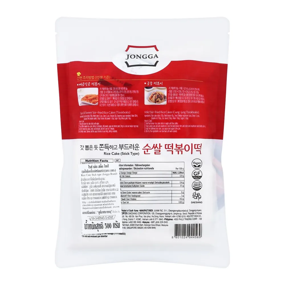 ต๊อกป๊อกกิ อาหารเกาหลีที่ได้รับความนิยมอย่างมากอีกหนึ่งเมนู เราเลยอยากแนะนำให้คุณลองทำกินเองที่บ้านหนึ่งในวัตถุดิบหลักที่ต้องมีคือ &quot;แป้งต๊อกป๊อกกิชนิดแท่ง จงกา&quot; ตัวเส้นเหนียวนุ่ม หนุบหนับ มีส่วนประกอบที่สำคัญโดยประมาณ: ข้าวเจ้า 99%, เกลือ 0.8%, สปีริท 0.2%<br />