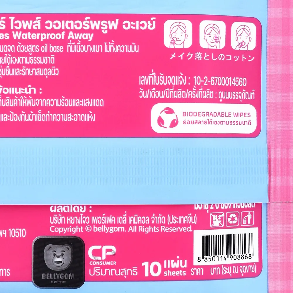 แจ๊บส์ ผ้าเช็ดเครื่องสำอาง กันน้ำ 10 แผ่น