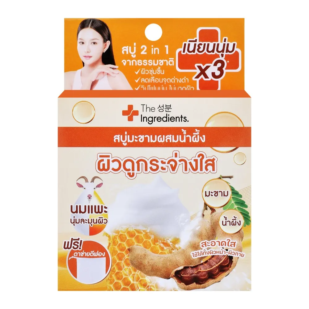 ดิ อินกรีเดียนส์ โกทมิลค์ ไวท์เทนนิ่ง โซป ผลิตภัณฑ์ทำความสะอาดผิวหน้าและผิวกาย สบู่ 2in 1 ในก้อนเดียว สูตรนมแพะ มอบความชุ่มชื้นให้ผิวเนียนละเอียด ลดผิวกร้านและสูตรมะขามผสม น้ำผึ้ง ช่วยขจัดเซลล์ผิวเก่าเผยผิวใหม่แลดูกระจ่างใส<br />