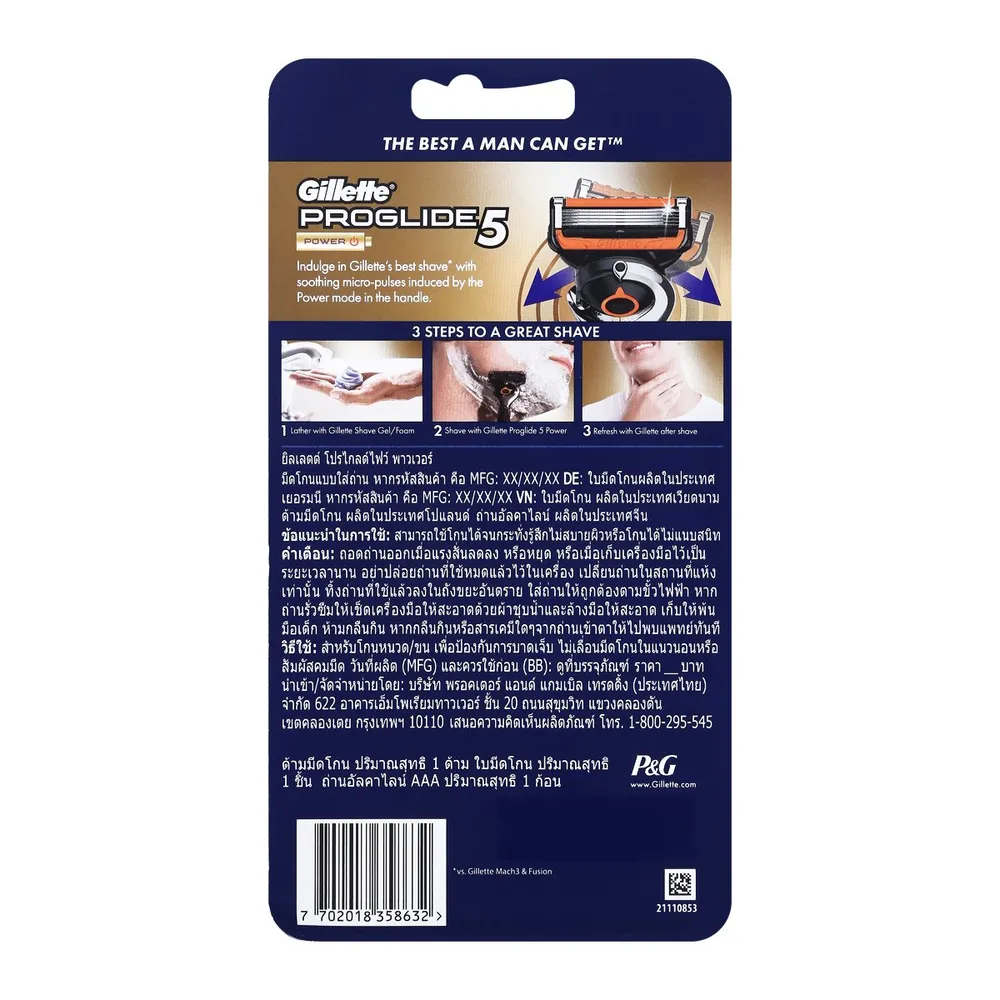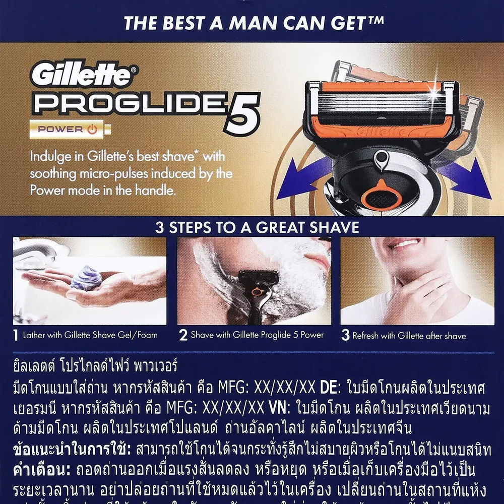 ด้วยนวัตกรรมใหม่ของมีดโกนหนวด ยิลเลตต์ ฟิวชั่้น โปรไกลด์ เพาว์เวอร์ เพื่อประสบการณ์ที่ดีสุดสำหรับคุณผู้ชาย กับ 5 ใบมีดโกนบางเฉียบ ให้การโกนที่แม่นยำ<br />