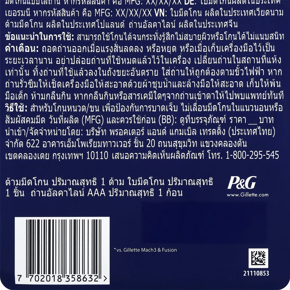 - 5 ใบมีดโกนบางเฉียบ ลดการออกแรงในการโกน<br />