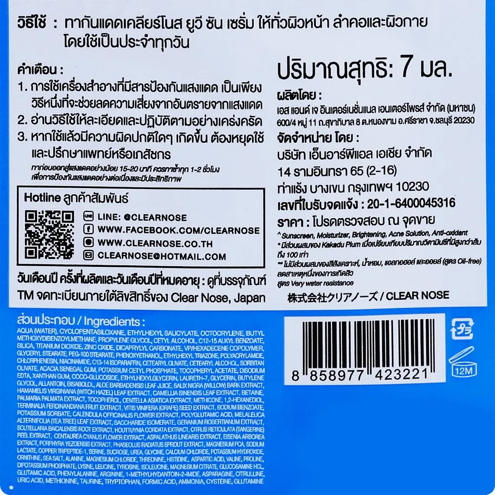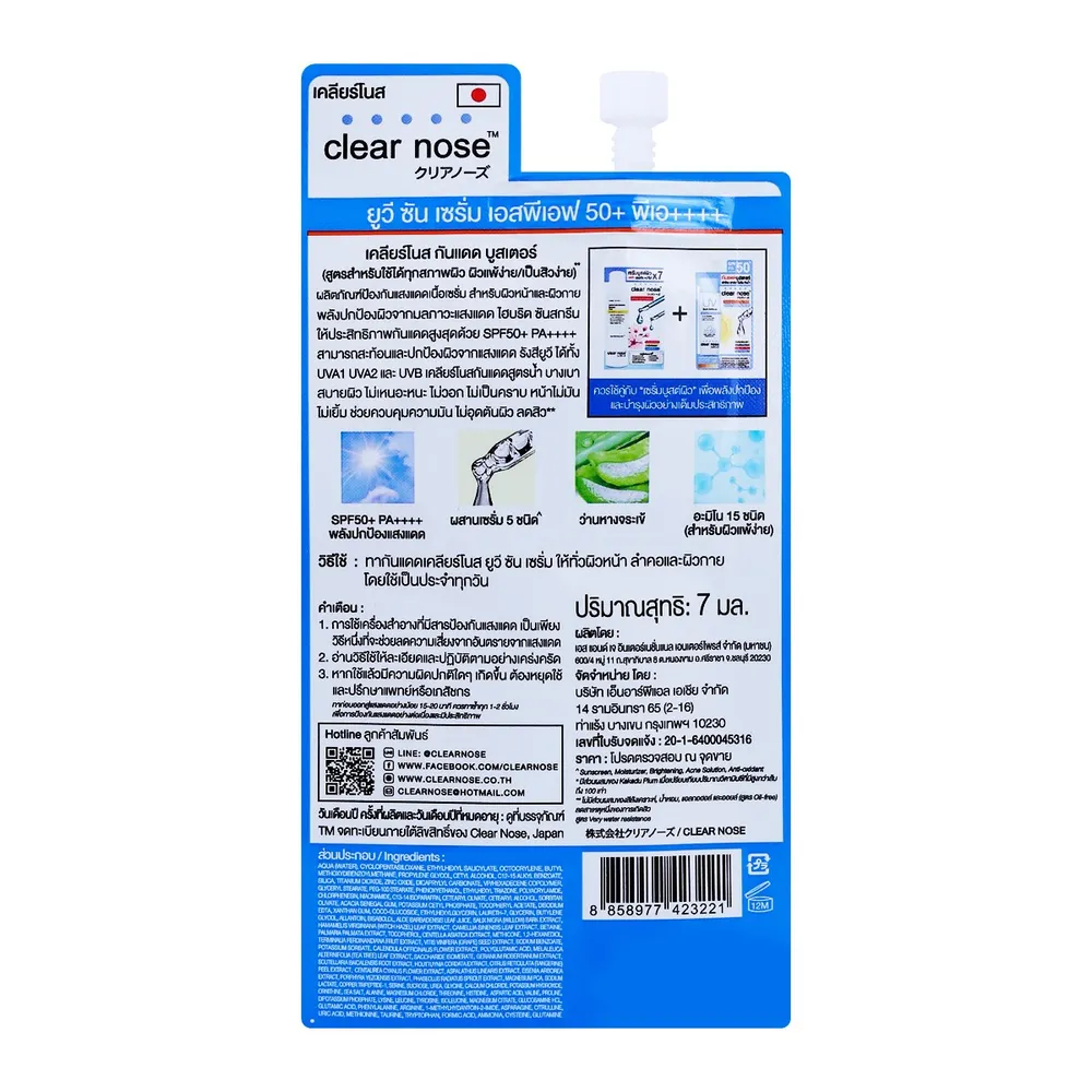 เคลียร์โนส ยูวี ซัน เซรั่ม เอสพีเอฟ 50+ พีเอ++++ 7 มล.