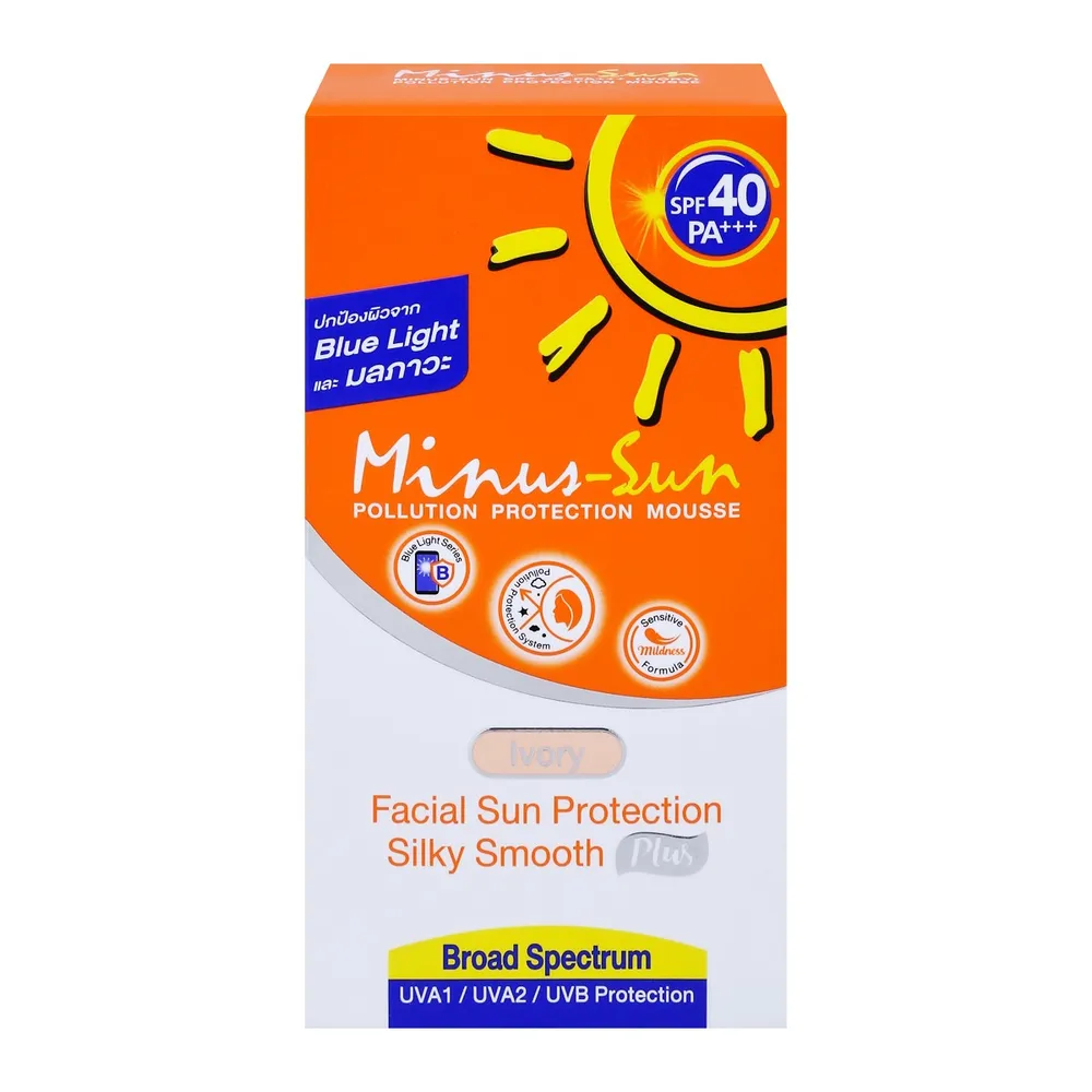 <p>ไมนัส-ซัน เฟเชียล ซัน โพรเทคชั่น ซิลกี้ มูส พลัส SPF40 PA+++ สีไอวอรี่ 30 ก.<br />