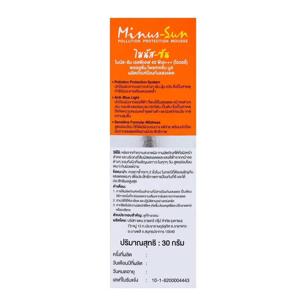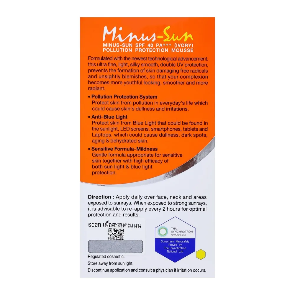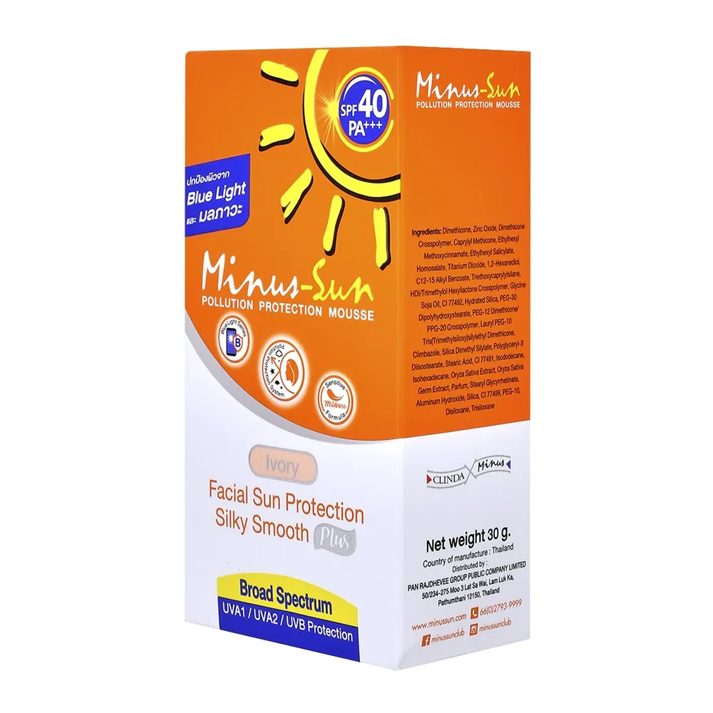 ไมนัส-ซัน เฟเชียล ซัน โพรเทคชั่น ซิลกี้ มูส พลัส SPF40 PA+++ สีไอวอรี่ 30 ก.