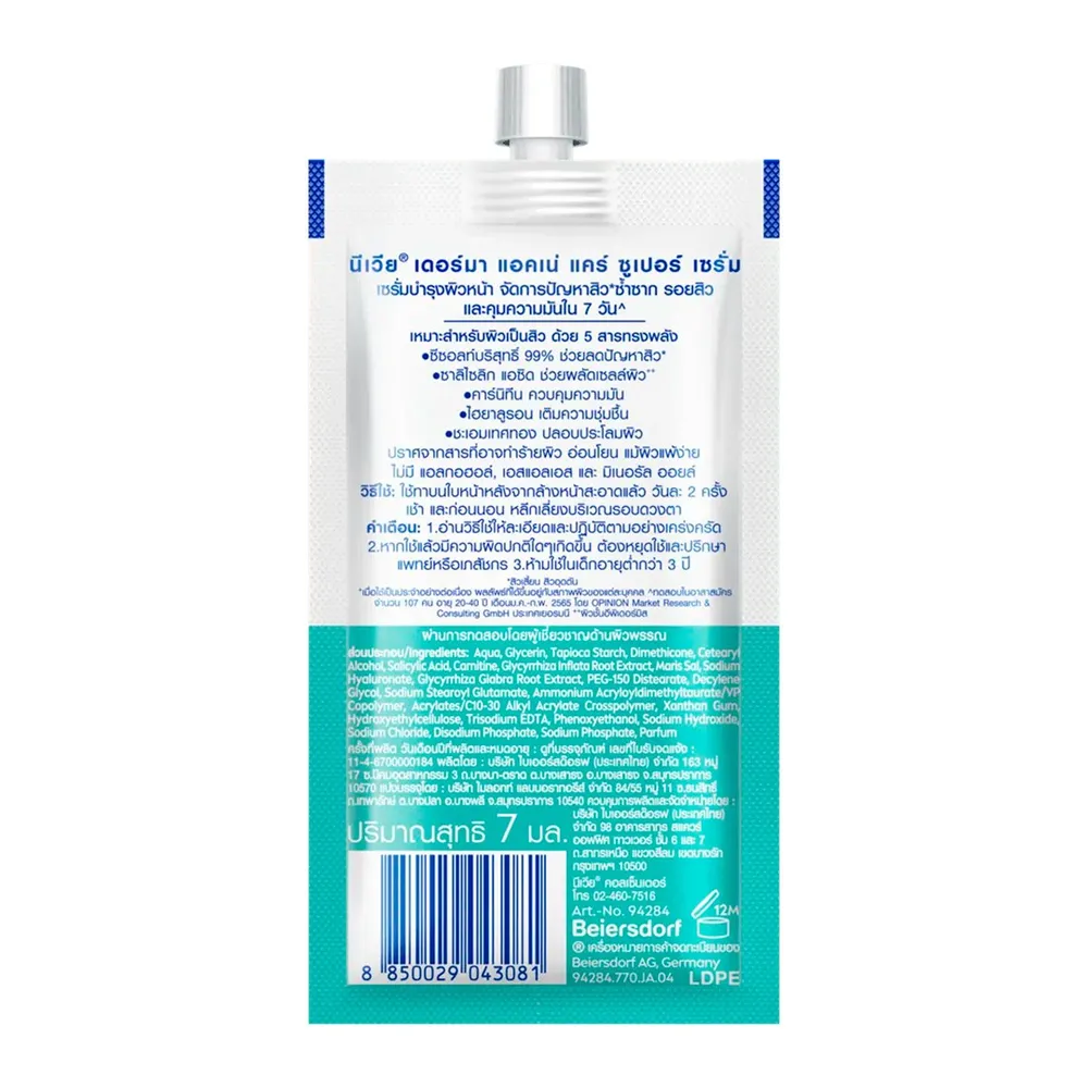นีเวีย เดอร์มา แอคเน่ แคร์ ซุปเปอร์ เซรั่ม เซรั่มบำรุงผิวหน้า จัดการปัญหาสิว ลดโอกาสการเกิดซ้ำของสิว ช่วยฟื้นบำรุงผิวพังจากสิว ซ้ำซาก<br />