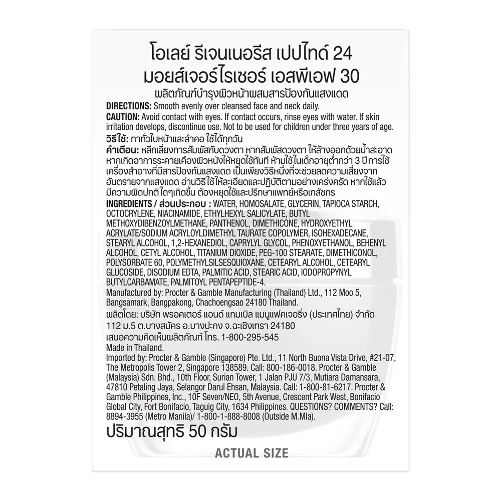 โอเลย์ รีเจนเนอรีส คอลลาเจน เปปไทด์ 24 มอยเจอร์ไรเซอร์ SPF30 50 ก.