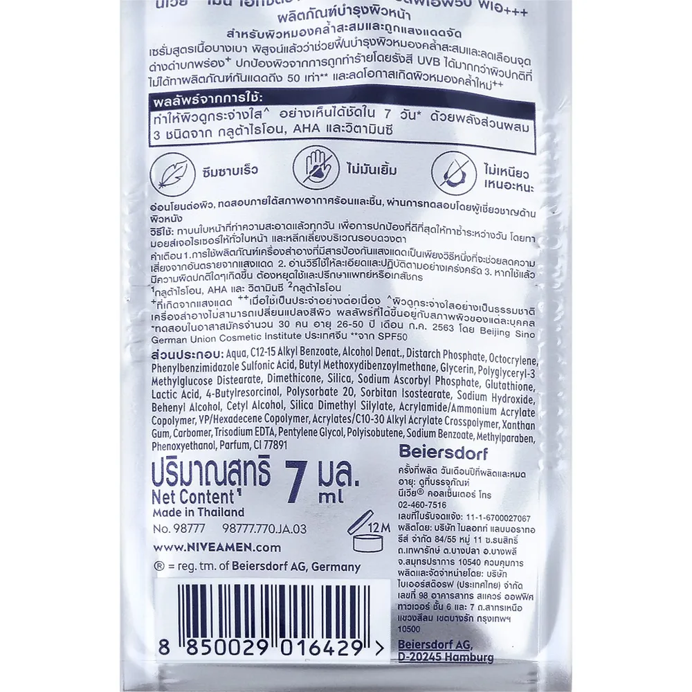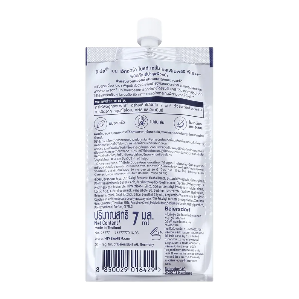 นีเวียเมน เอ็กซ์ตร้า ไวท์ 10X เอฟเฟค เซรั่ม SPF50 PA+++ 7 มล. แบบซอง