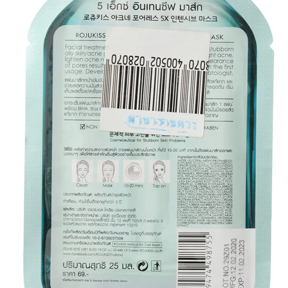 <p>โรจูคิส แอคเน่ พอร์เลส 5 เอ็กซ์ อินเทนซีฟ มาส์ก<br /><br />โรจูคิสแอคเน่พอร์เลส 5 เอ็กซ์อินเทนซีฟ แผ่นมากส์หน้าเข้มข้นด้วยแอคเน่ เซรั่ม 5 เท่า ที่จะเข้าดูแลปัญหาผิวมันมีรอยสิวแก้ยาก และช่วยลดความมันส่วนเกินบนใบหน้าให้ผิวได้รับการดูแลได้อย่างล้ำลึก ดูเรียบเนียน ลดการอุดตัน <br /><br />- เริ่มเห็นผลตั้งแต่ครั้งแรกที่ใช้ <br />- ลดความมันส่วนเกินบนใบหน้า<br />- ดูแลปัญหาผิวมันมีรอยสิวแก้ยาก<br />- พัฒนาและแนะนำโดยแพทย์ผู้เชี่ยวชาญจากเกาหลี<br /><br />