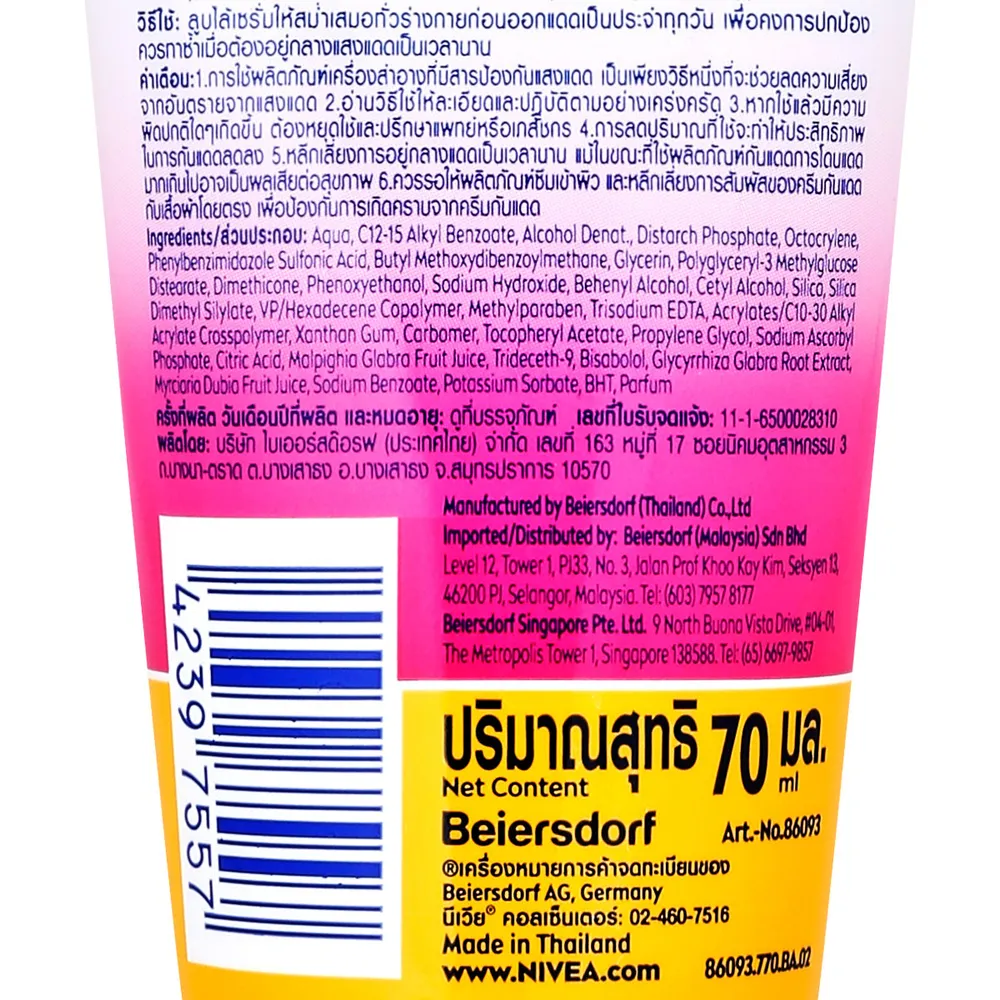 นีเวีย ซัน ซูเปอร์ โพรเท็ค เดลี่ ไวท์ ซัน บอดี้เซรั่ม เอสพีเอฟ 50 พีเอ +++ 70 มล.