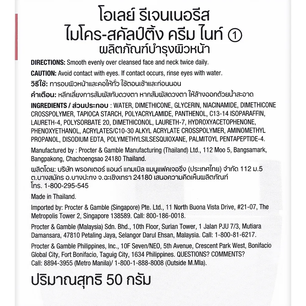 - โอเลย์ รีเจนเนอรีส ไมโคร-สกัลป์ติ้ง ไนท์ครีม<br />