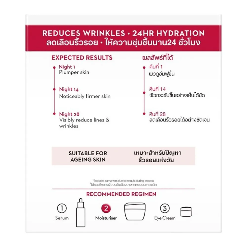 โอเลย์ รีเจนเนอรีส ไมโคร-สกัลป์ติ้ง ไนท์ครีมที่ช่วยเติมเต็มและสร้างเซลล์ผิวใหม่ เติมความชุ่มชื้นอย่างต่อเนื่องตลอดคืน เพื่อช่วยให้ร่องลึกและริ้วรอยดูลดเลือนลง ผิวของคุณจะดูอ่อนเยาว์ลง รู้สึกนุ่มและเนียนขึ้น หลังจาก 2 สัปดาห์<br />