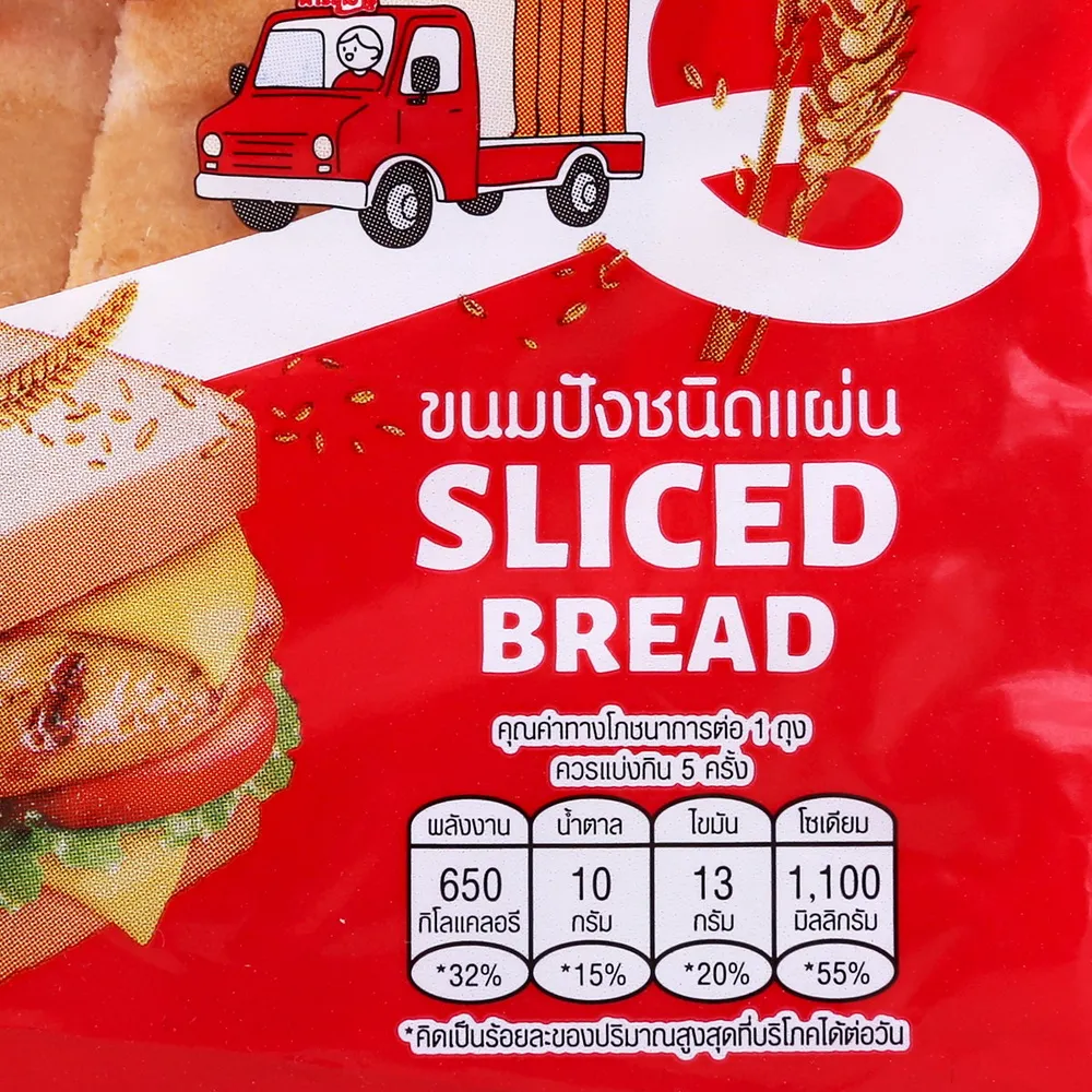 - ขนมปังแซนวิซแผ่น ขนมปังชนิดแผ่นเนื้อขาว ใช้แป้งสาลีไม่ฟอกขาว 100% 0% คอเลสเตอรอล<br />