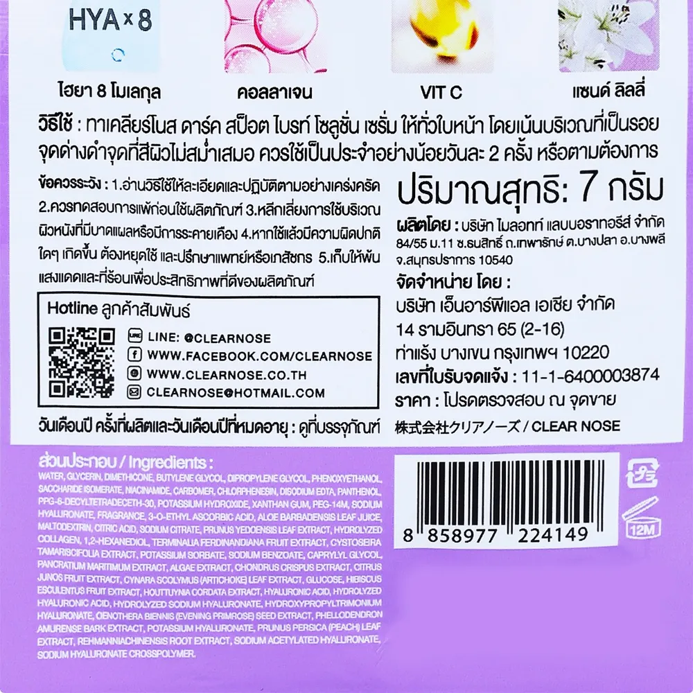 - เคลียร์โนส ดาร์ค สป็อต ไบรท์ โซลูชั่น เซรั่ม<br />