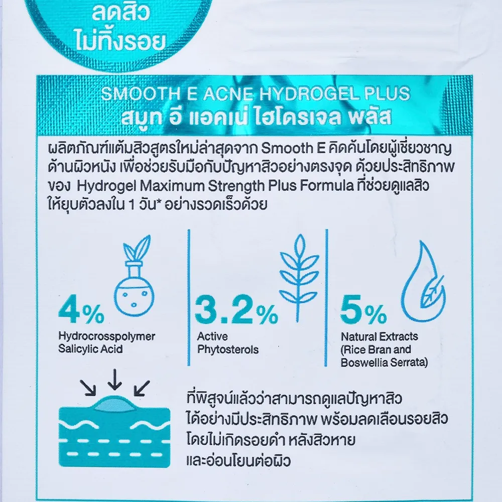 สมูทอี แอคเน่ ไฮโดรเจล พลัส เจลเวชสำอางเจลแต้มสิวสิวหายใน 1 วัน เจลแต้มสิว สำหรับผิวบอบบางแพ้ง่าย ปราศจากสเตียรอยด์ เวชสำอางสำหรับคนมีปัญหาสิว สิวยุบจริง ไม่ทิ้งรอยดำรอยแดง และหลุมสิว!<br />