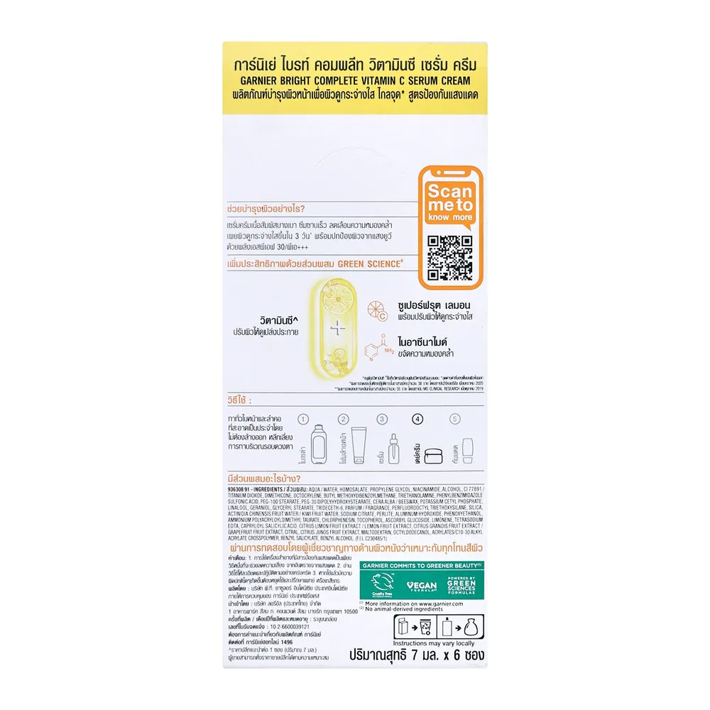 การ์นิเย่ สกิน เนเชอรัลส์ ไบรท์ คอมพลีท วิตามินซี เซรั่ม ครีม 7 มล. แพ็ค 6