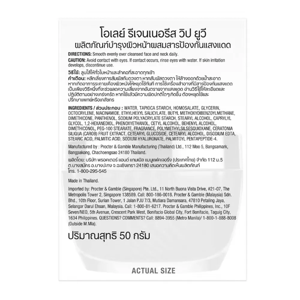- โอเลย์ รีเจนเนอรีส วิป ยูวี มอยซ์เจอร์ไรเซอร์ SPF30 PA+++<br />