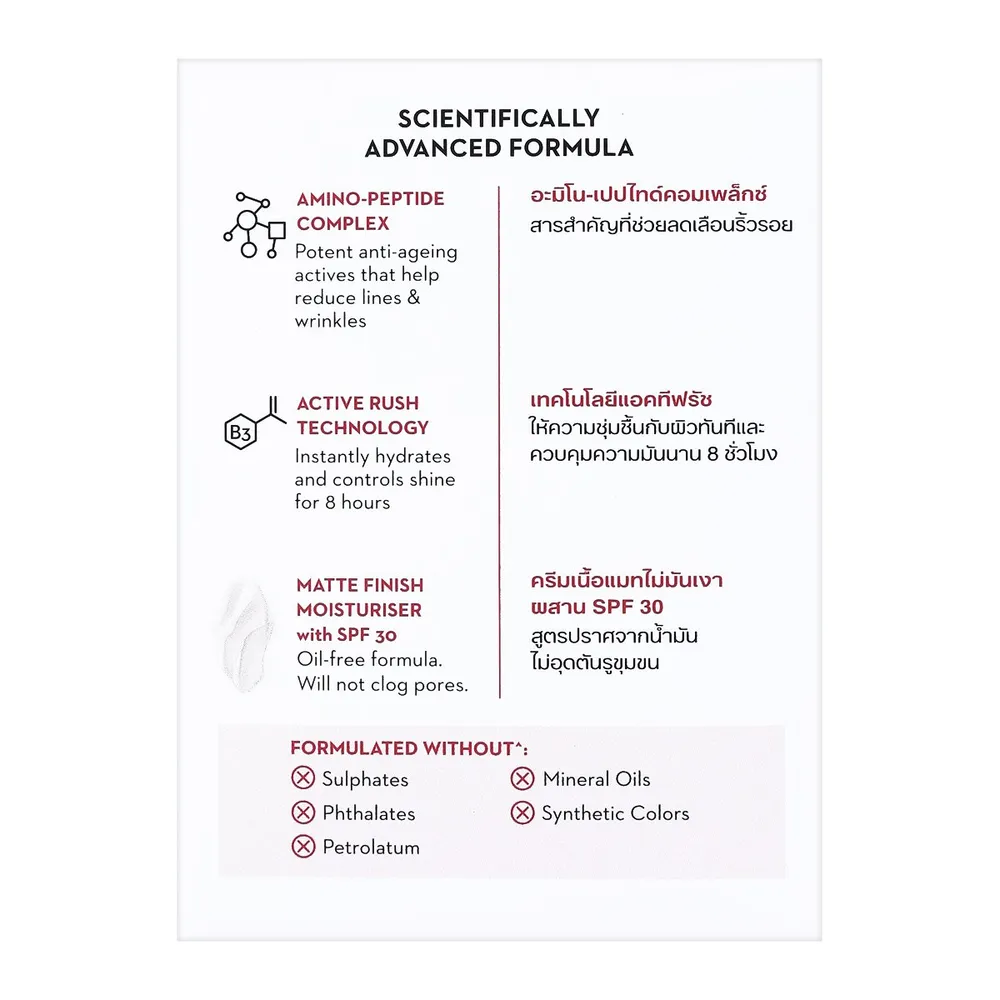 - ปราศจากน้ำมัน ไม่เหนียวเหนอะหนะ และไม่อุดตันรูขุมขน<br />