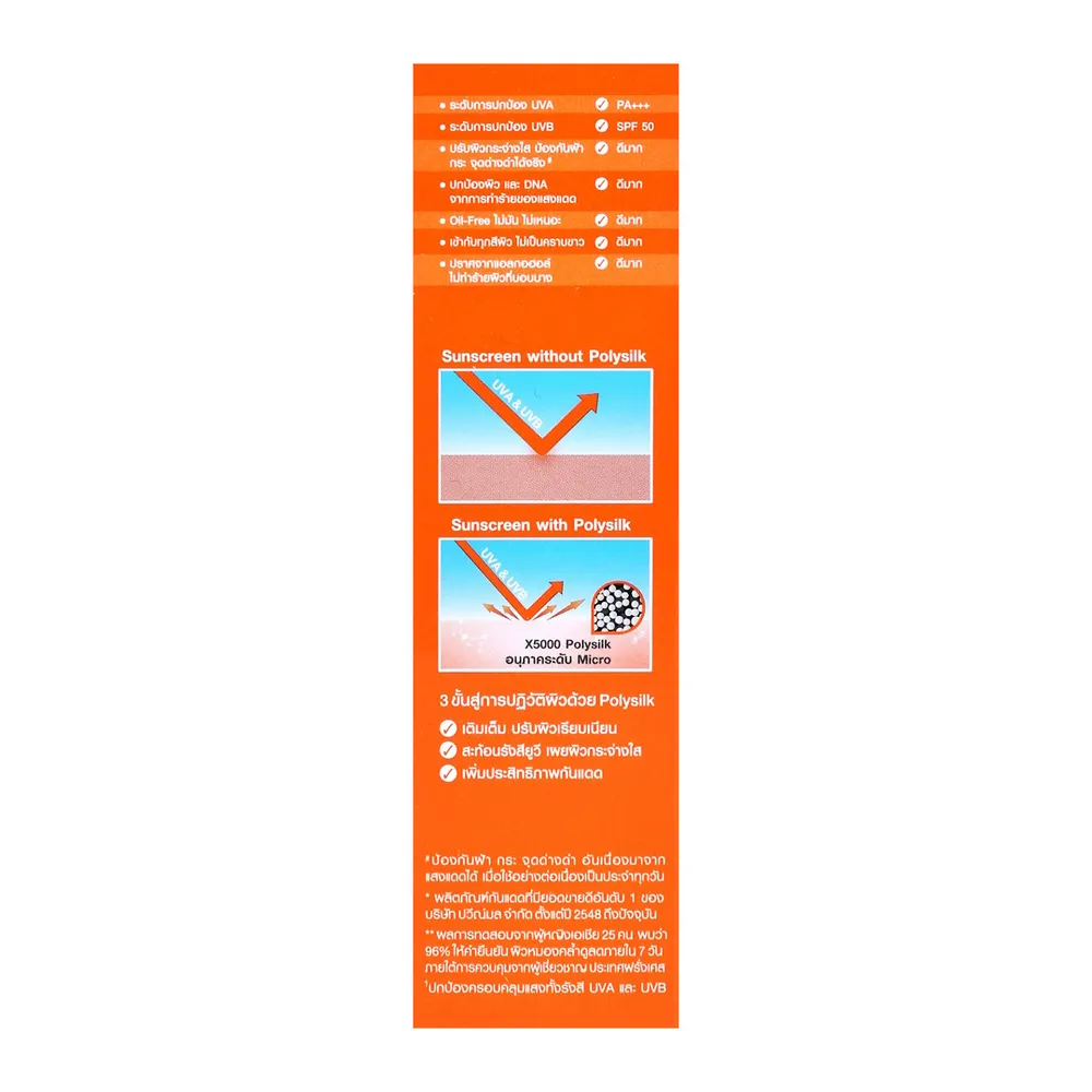 - ป้องกันรังสี UVA และ UVB ได้สูงมากกว่า 50 เท่า<br />