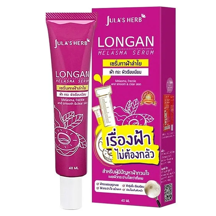 <p>จุฬาเฮิร์บ เซรั่มทาฝ้าลำไย 40 มล.<br /><br />จุฬาเฮิร์บ เซรั่มทาฝ้าลำไย เนื้อบางเบา ซึมลงผิวได้เร็ว ช่วยจัดการกับปัญหาฝ้า กระ และจุดด่างดำได้อย่างตรงจุด อุดมไปด้วยสารสกัดเข้มข้นจากเมล็ดลำไย ที่ช่วยต่อต้านอนุมูลอิสระ ช่วยลดเลือนฝ้า กระ จุดด่างดำให้ค่อยๆ จางลงได้ พร้อมสารสกัดจากผลไม้ ช่วยผลัดเซลล์ผิวที่ตายแล้ว เผยผิวที่สดใส กระจ่างใสกว่าที่เคย<br /><br />- ด้วยสารสกัดเข้มข้นจากเมล็ดลำไย ที่มีสารสำคัญกลุ่มโพลิฟินอล ได้แก่ Gallic Acid และ Ellagic Acid ช่วยต้านอนุมูลอิสระ และสามารถช่วยลดเลือนรอยฝ้า กระ<br />- Mix Fruit จากกรดผลไม้มีคุณสมบัติช่วยพลัดเซลล์ผิวเก่าที่ตายและกระตุ้นการสร้างเซลล์ผิวใหม่ทดแทน ลดความมันบนใบหน้า ให้ผิวดูขาวกระจ่างใส เรียบเนียน<br />- Aloe vera ว่านหางจระเข้ ช่วยลดการระคายเคืองปกป้องผิวที่ถูกทำร้ายจากแสงแดด เพิ่มความชุ่มชื้นคืนสู่ผิวอย่างรวดเร็ว ให้ผิวเต่งตึง ไม่เหี่ยวย่น คืนความเปล่ง<br />- สารสกัดจากมะเฟืองมี Vitamin C และ A สูงมาก ถือเป็น AHA จากผลไม้ที่สกัดมาจากธรรมชาติ ช่วยบำรุงผิวพรรณ สามารถป้องกันการทำลายเซลล์ผิวจากอนุมูลอิสระให้ผิวกระจ่างใสได้เป็นอย่างดี<br />- เนื้อเซรั่มบางเบา ไม่เหนียวเหนอะหนะ ทาได้ทุกวัน<br /><br />*ภาพประกอบใช้เพื่อการโฆษณาเท่านั้น</p>