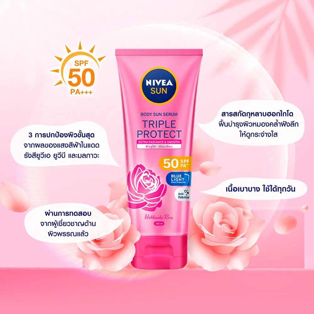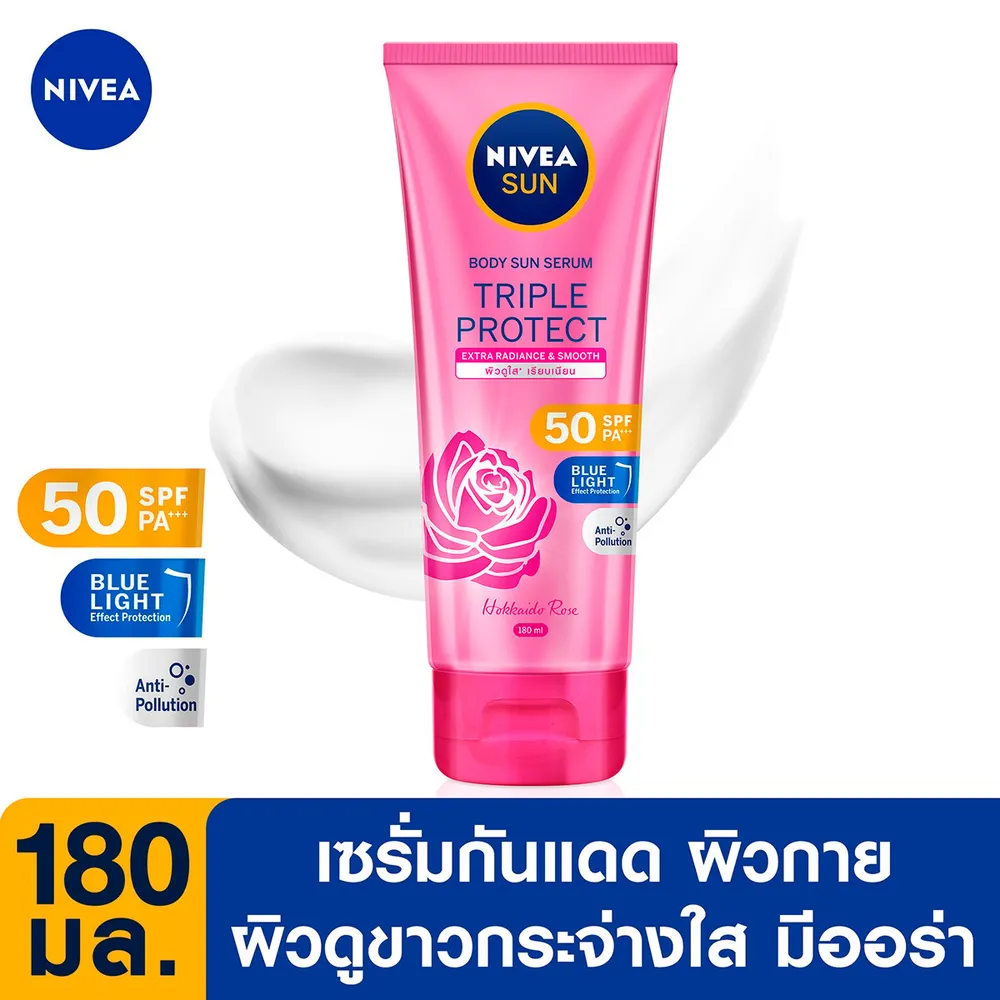 นีเวีย ซัน ทริปเปิ้ล โพรเท็ค เอ็กซ์ตร้า เรเดียนซ์ แอนด์สมูท บอดี้ซัน เซรั่ม เอสพีเอฟ 50 พีเอ+++ 180 มล.