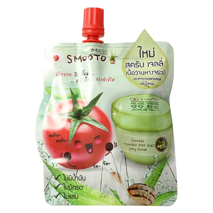 <p>สมูทโตะ สครับ เจลลี่ เนื้อว่านหางจระเข้<br /> <br /> สมูทโตะ สครับ เจลลี่ เนื้อว่านหางจระเข้ สครับเจลลี่เนื้อนุ่ม เด้งดึ๋ง ที่ผลิตจากนวัตกรรมเม็ดสครับละเอียด อ่อนโยน ไม่บาดผิว มีประสิทธิภาพในการผลัดเซลล์ผิวเก่าเริมสร้างเซลล์ผิวใหม่ได้อย่างดี ผสานคุณค่าจากไลโคปีน ว่านหางจระเข้ สารสกัดเมือกหอยทาก และทีทรีออยล์ในการทำความสะอาดผิว<br /> <br /> - ให้ผิวแลดูกระจ่างใสอย่างเป็นธรรมชาติ<br /> - ฟื้นบำรุงผิวให้แข็งแรง รูขุมขนแลดูกระชับ&nbsp;<br /> - ลดรอยด่างดำให้แลดูจางลง ผิวรู้สึกเรียบเนียน<br /> - ช่วยดูดซับความมันส่วนเกิน สิวอุดตัน ผดผื่นบนใบหน้า<br /> - บำรุงผิวให้สว่างกระจ่างใส มีสุขภาพดีอย่างเป็นธรรมชาติ<br /> <br /> <span style="color: #ff0000;">*บริษัทฯ ขอสงวนสิทธิ์ในการปรับเปลี่ยนราคาจำหน่ายและโปรโมชั่น รวมถึงแพ็คเกจและปริมาณสินค้าจากผู้ผลิตได้ตามความเหมาะสม โดยไม่จำเป็นต้องแจ้งให้ทราบล่วงหน้า</span><br /> <br /> *สีของสินค้าอาจมีความแตกต่าง ขึ้นอยู่กับการตั้งค่าของแต่ละหน้าจอ และภาพประกอบใช้เพื่อการโฆษณาเท่านั้น</p>