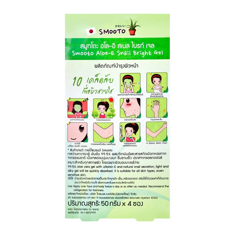 <p>สมูทโตะ อโลอี สเนล ไบรท์ เจล 50 กรัม แพ็ค 4</p>